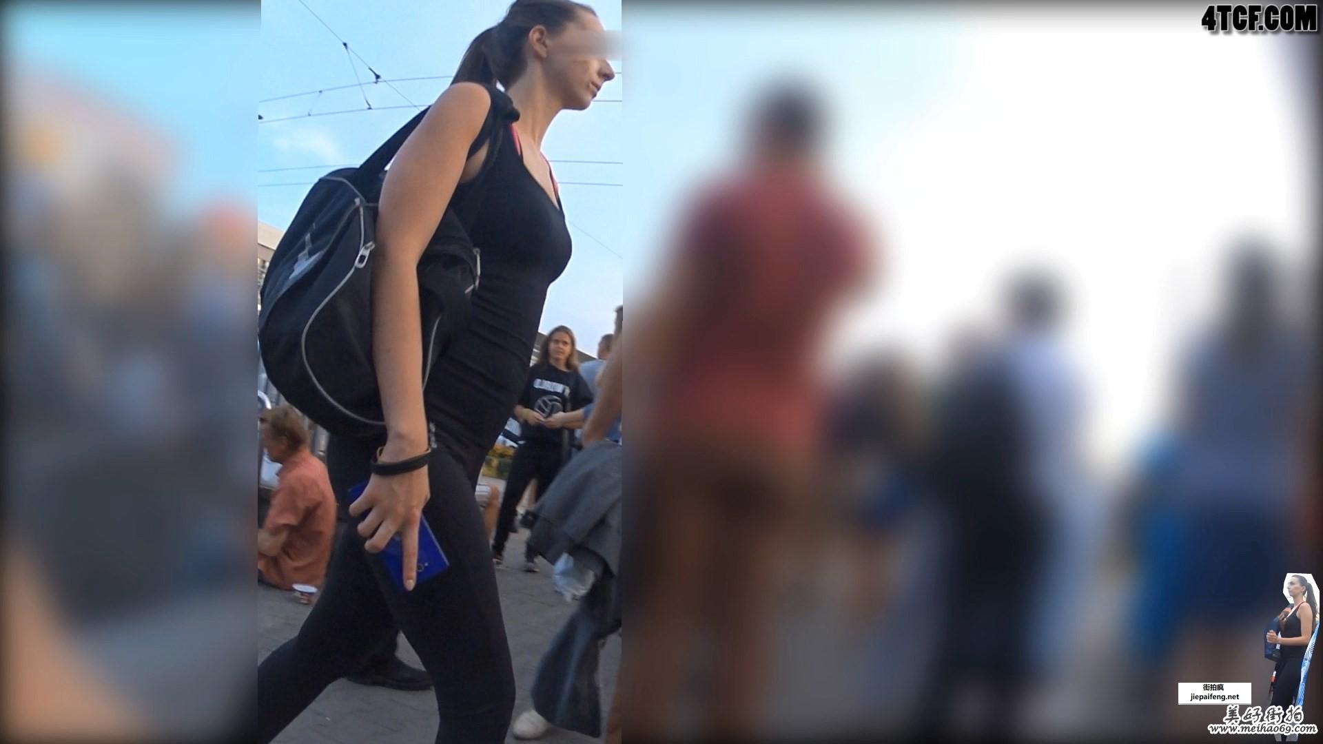 黑色紧身氨纶裤苗条身材马尾辫女孩极品大屁股[MP4/920M]
