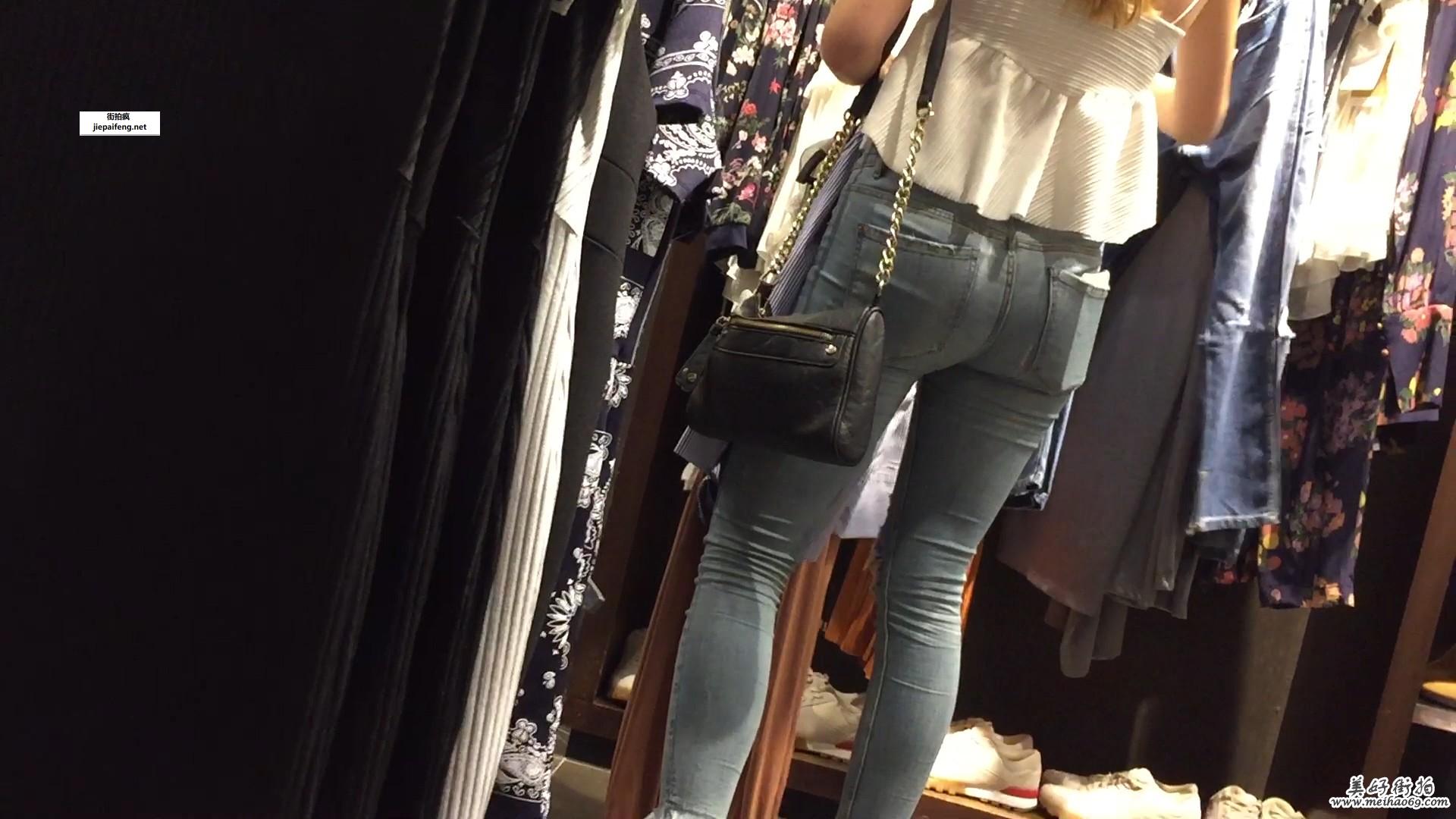 性感金发美女蓝色紧身牛仔裤的惊人的极品圆润翘臀[MP4/220M]