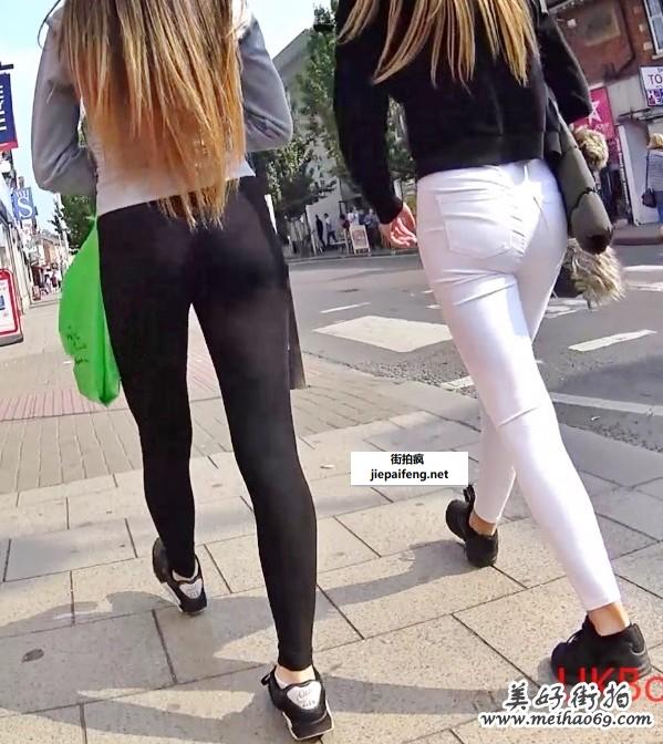 街拍黑色打底裤和白色牛仔裤金发两个美女[MP4/305M]