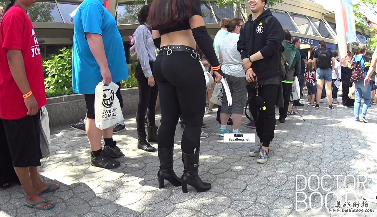 展会黑色紧身打底裤丰满洋妞极品圆润大屁股[MP4/343M]
