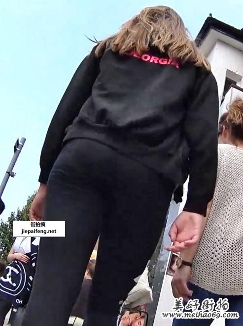 跟拍黑色紧身打底裤宽广圆臀金发洋妞[MP4/164M]