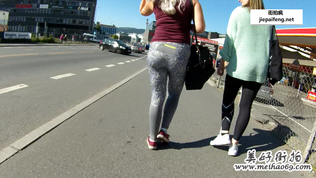 街拍灰色条纹紧身打底裤洋妞饱满翘臀[MP4/197M]
