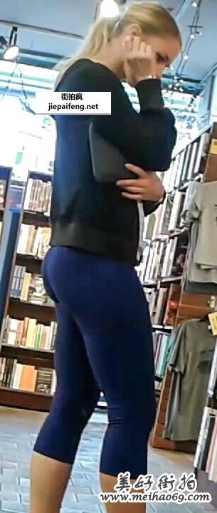 书店蓝色紧身打底裤性感翘臀金发漂亮洋妞[MP4/197M]