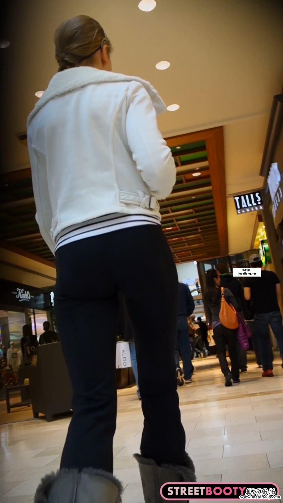 商场跟拍性感翘臀洋妞黑色紧身打底裤[MP4/367M]