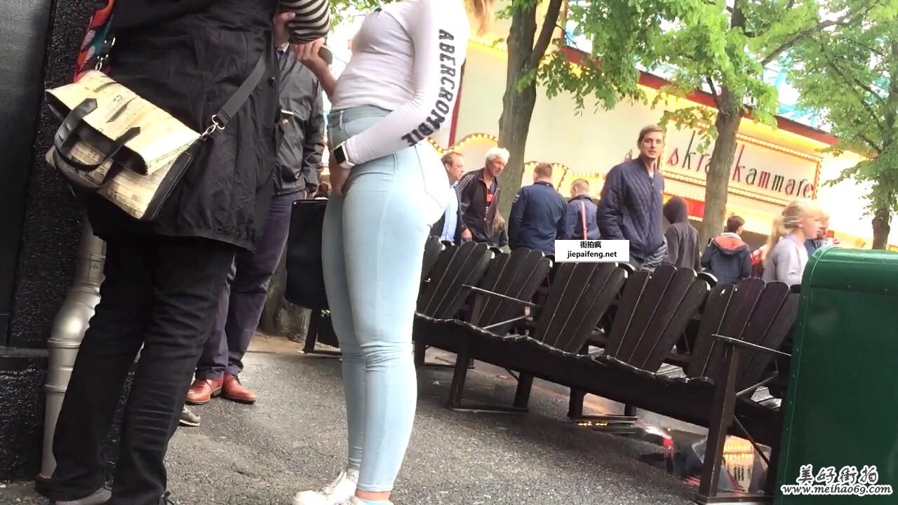 紧身浅蓝色牛仔裤洋妞极品翘臀[MP4/281M]