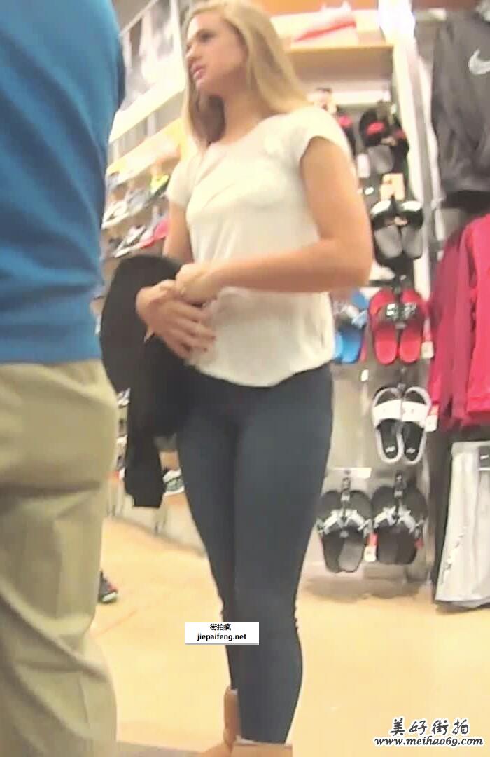 逛商场买鞋子的金发洋妞紧身牛仔裤[MP4/481M]