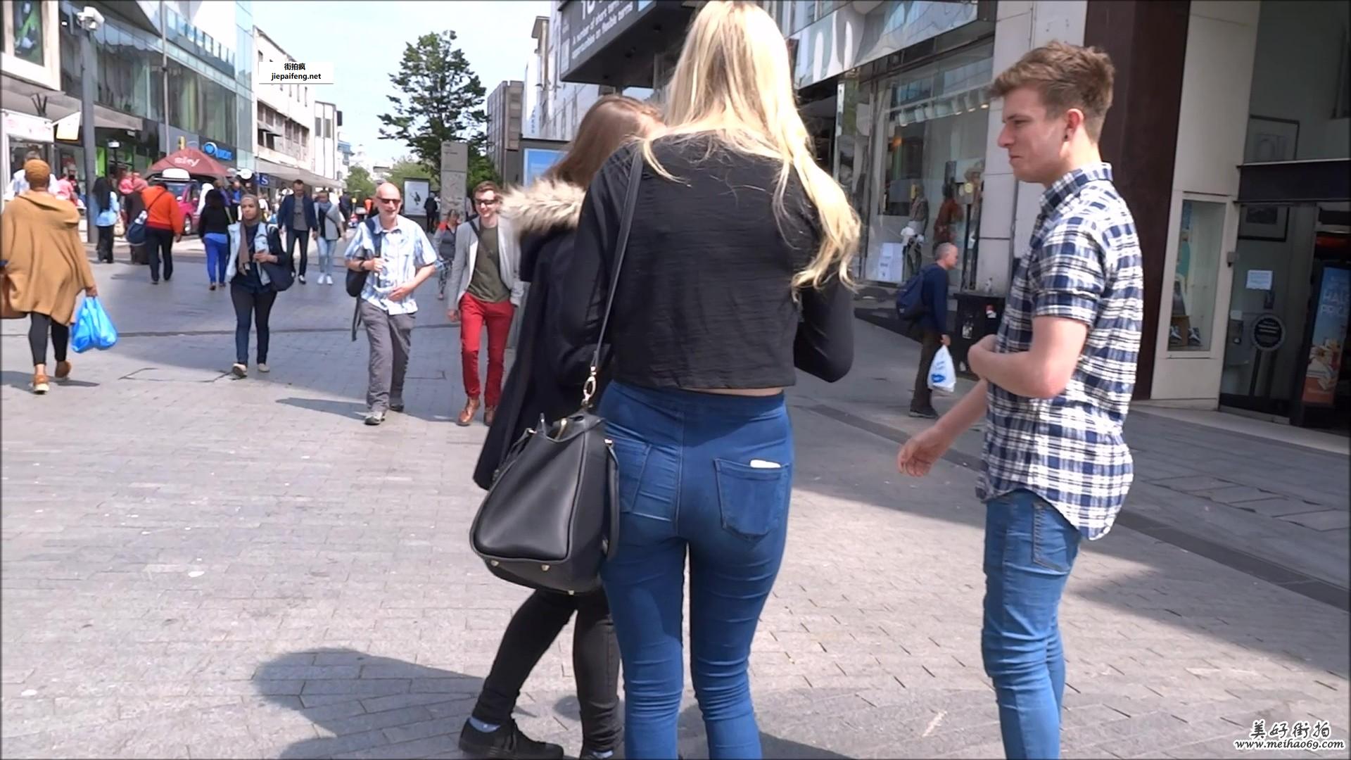 性感金发可爱洋妞紧身牛仔裤饱满丰臀[MP4/406M]