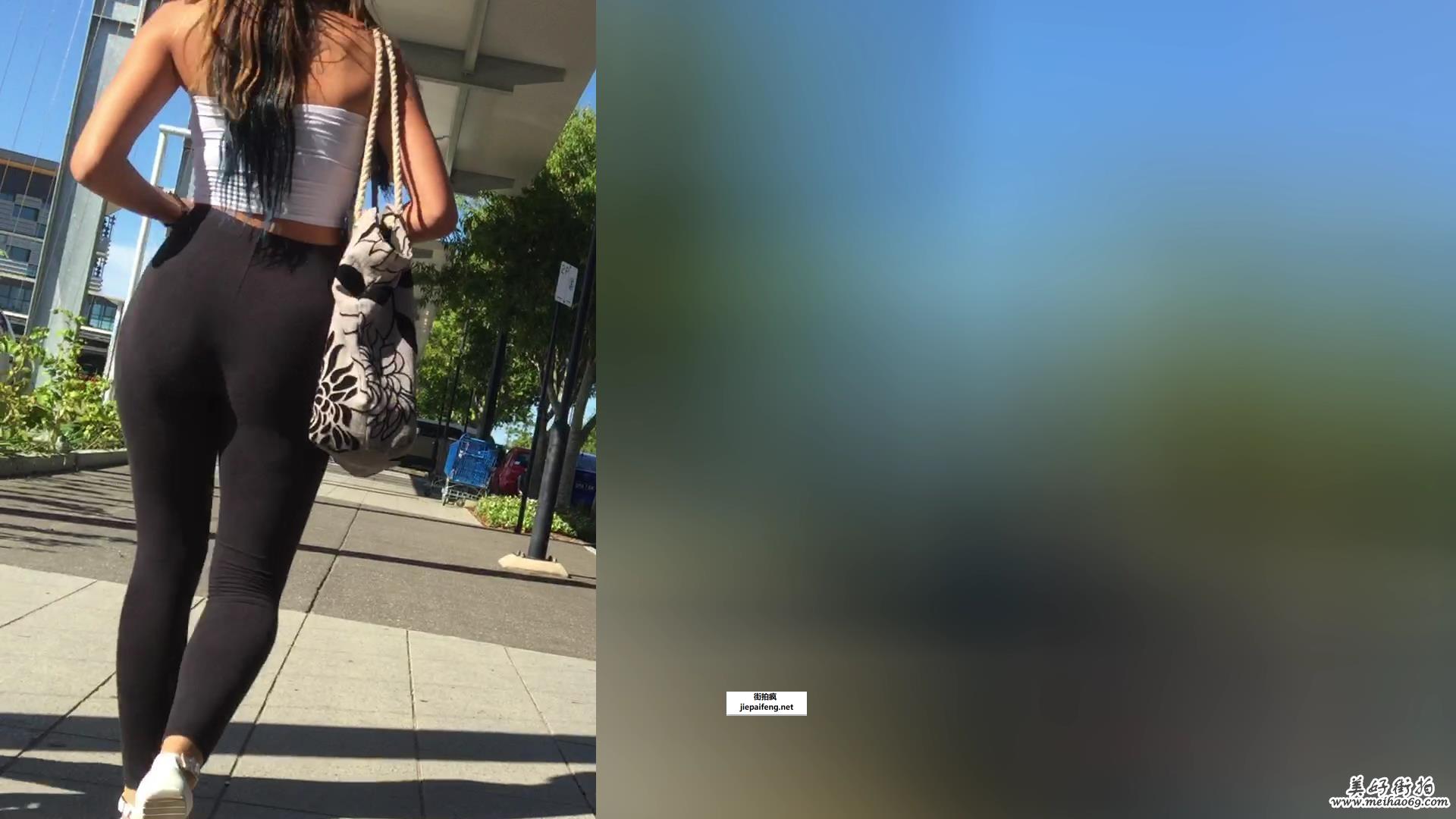 跟拍年轻洋妞黑色打底裤完美臀型[MP4/164M]