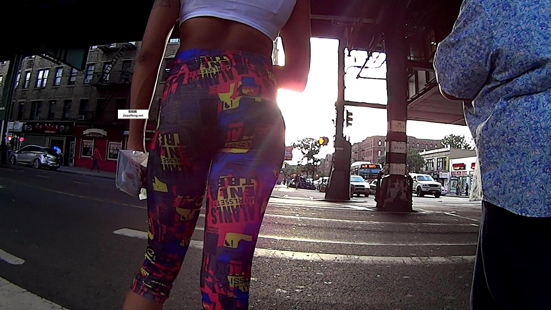 街拍圆润翘臀紧身花裤黑妹[MP4/197M]