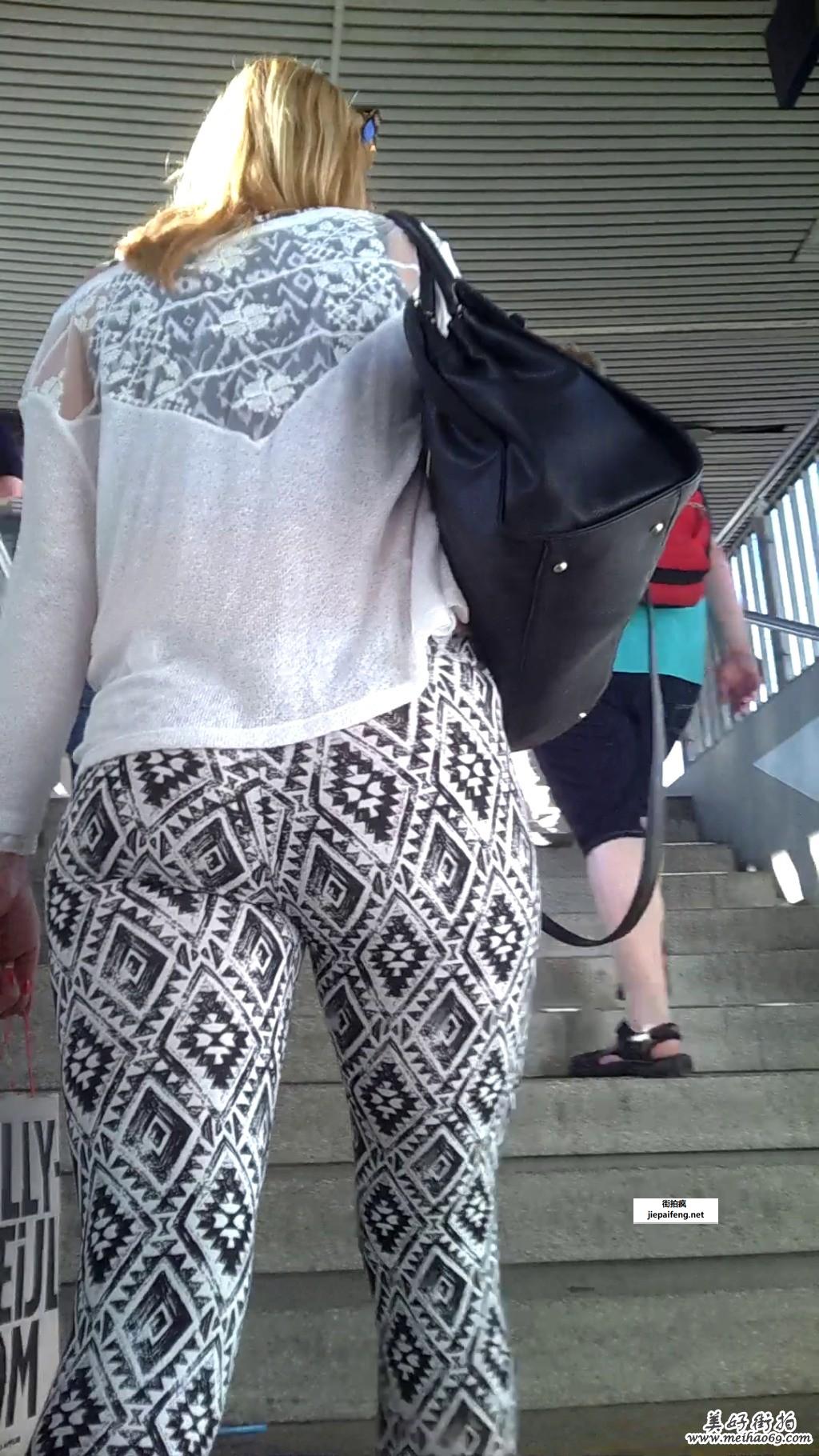 超级可爱的金发美女,图案修身带底裤性感美臀[MP4/434M]