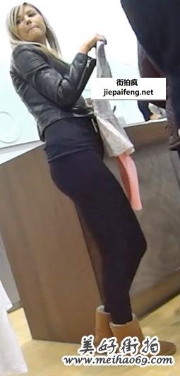 金发尤物美女黑色紧身打底裤,性感圆润翘臀诱惑[MP4/216M]
