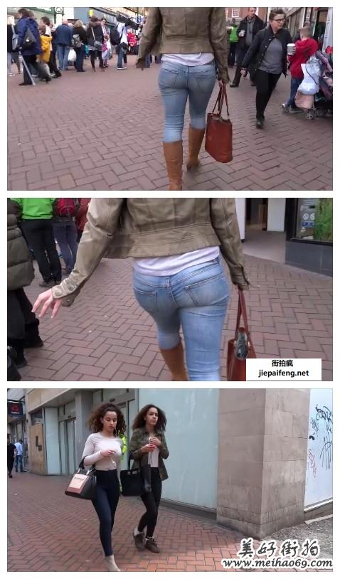 蓝色紧身牛仔裤圆臀美眉,黑色丁字[MP4/354M]