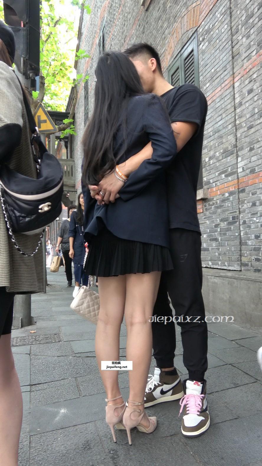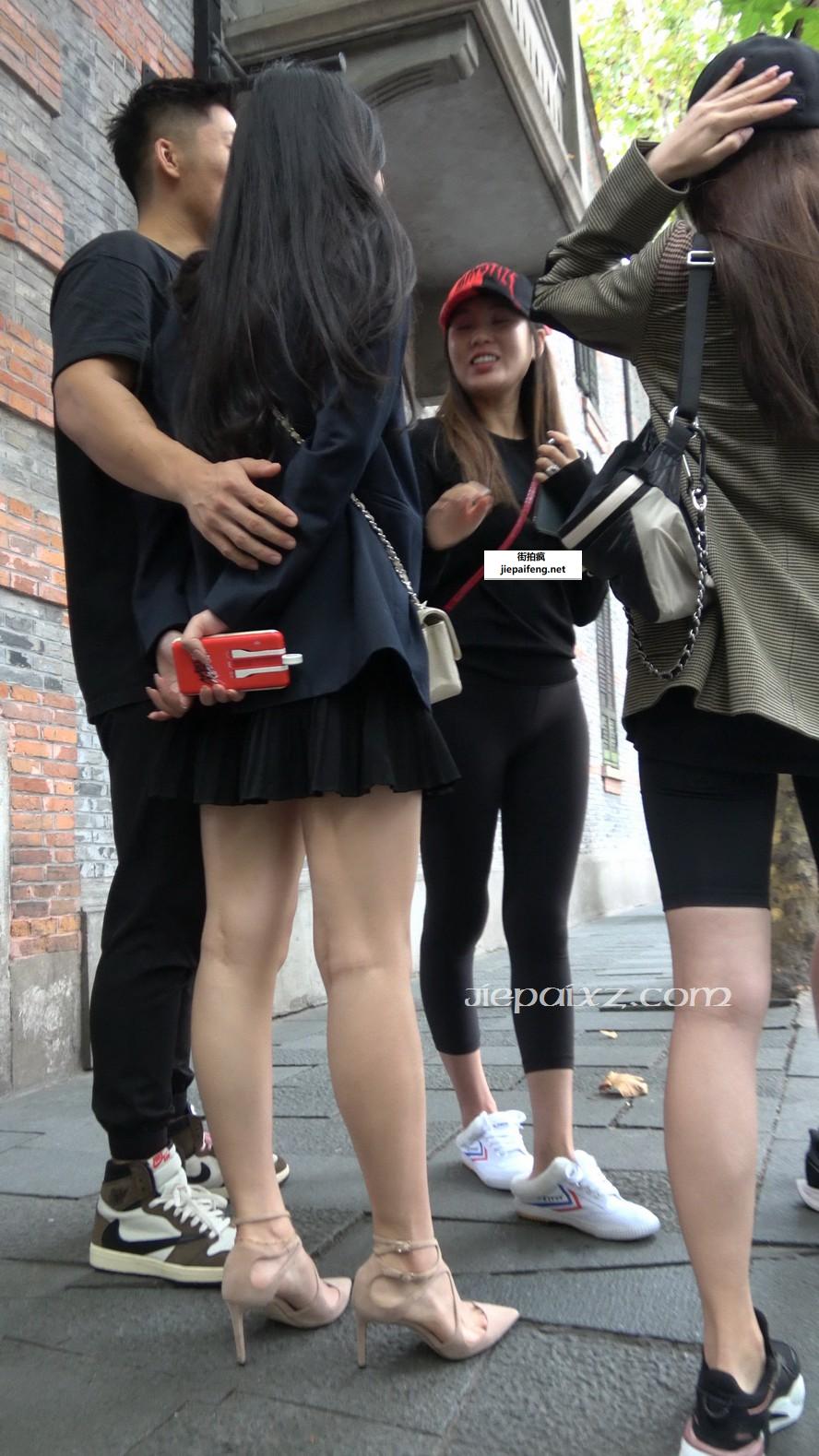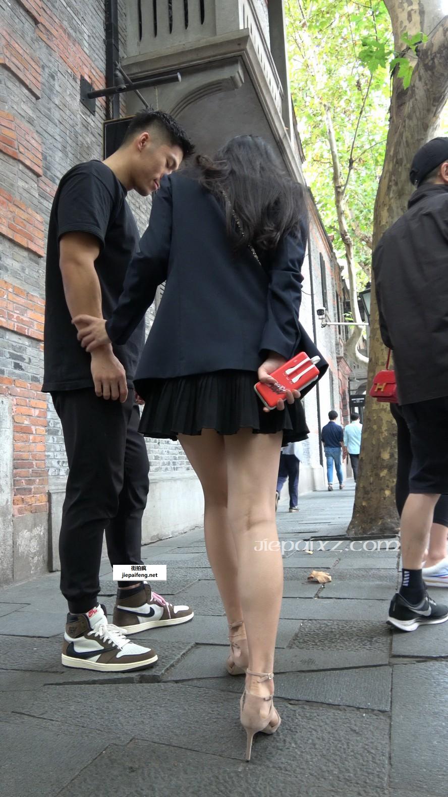 4K - 性感米色高跟鞋街拍黑色连衣裙美女 [1.58 GB/MP4]