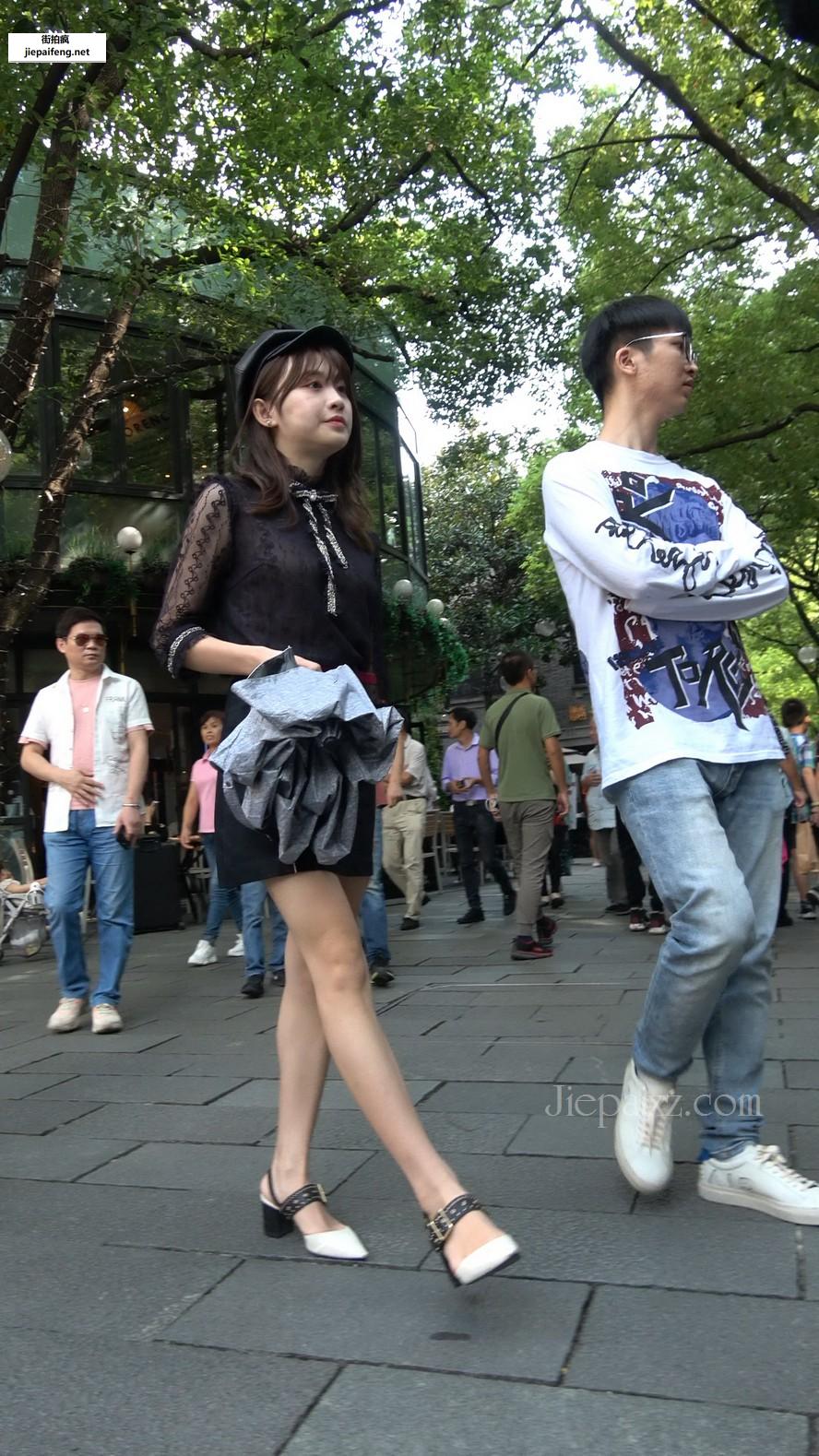 4K - 街拍黑色蕾丝裙街拍美女 [2.19 GB/MP4]