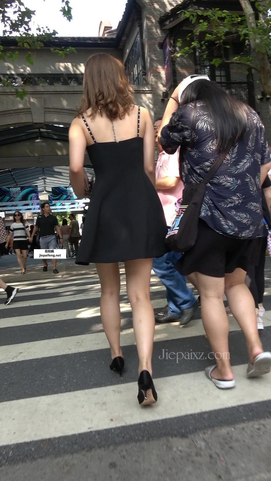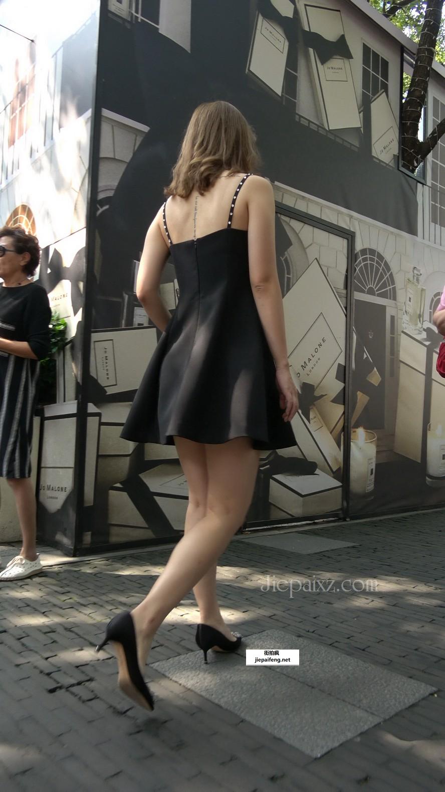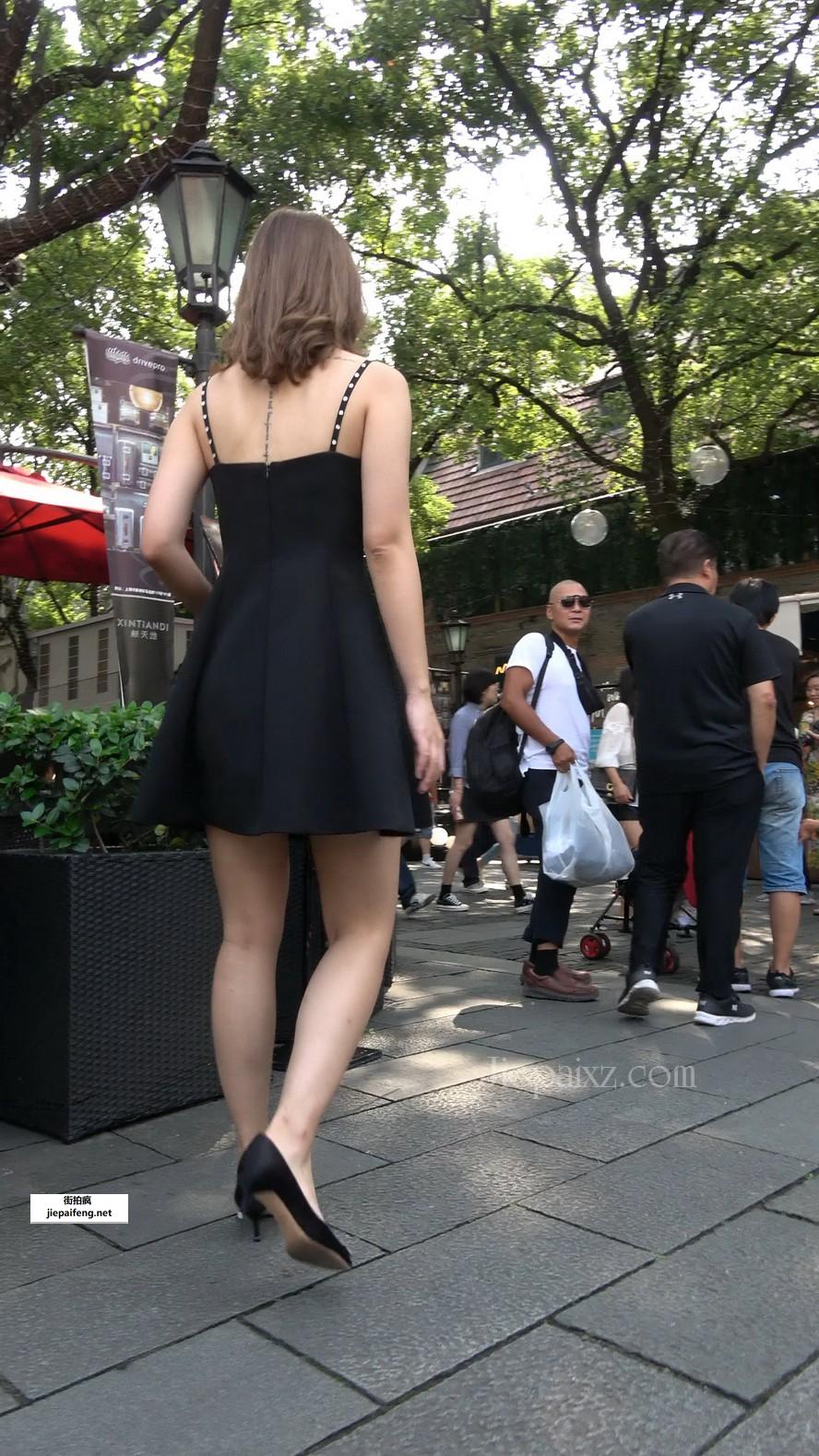 4K - 街拍黑色吊带裙姑娘 [2.10 GB/MP4]