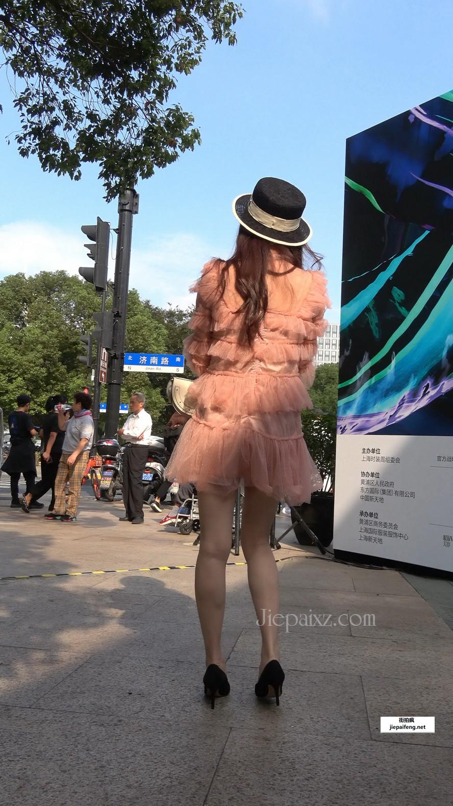 4K - 粉粉连衣裙街拍高跟美女 [617 MB/MP4]