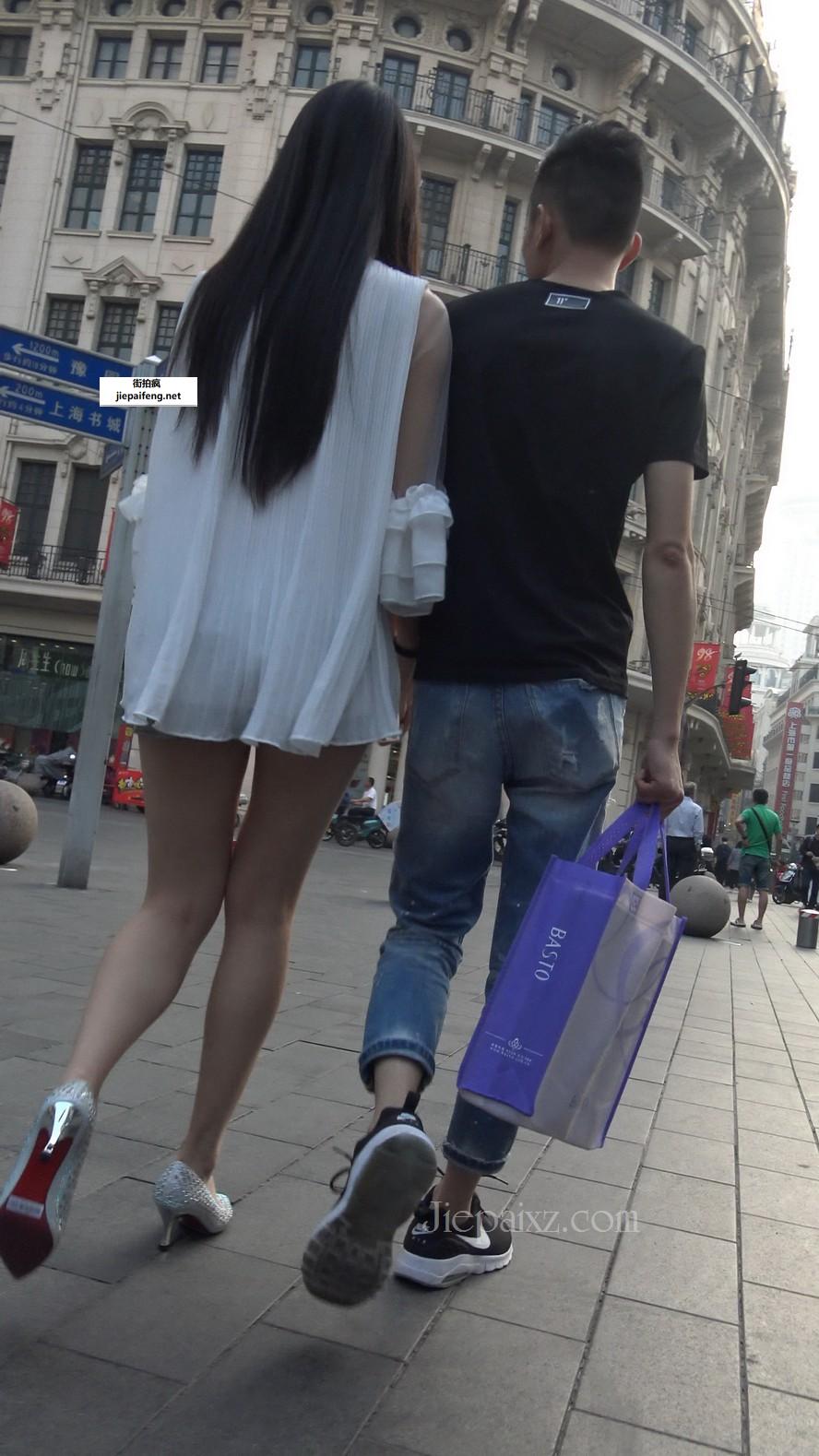 4K - 白色雪纺衫超短热裤街拍长腿美女 [2.08 GB/MP4]