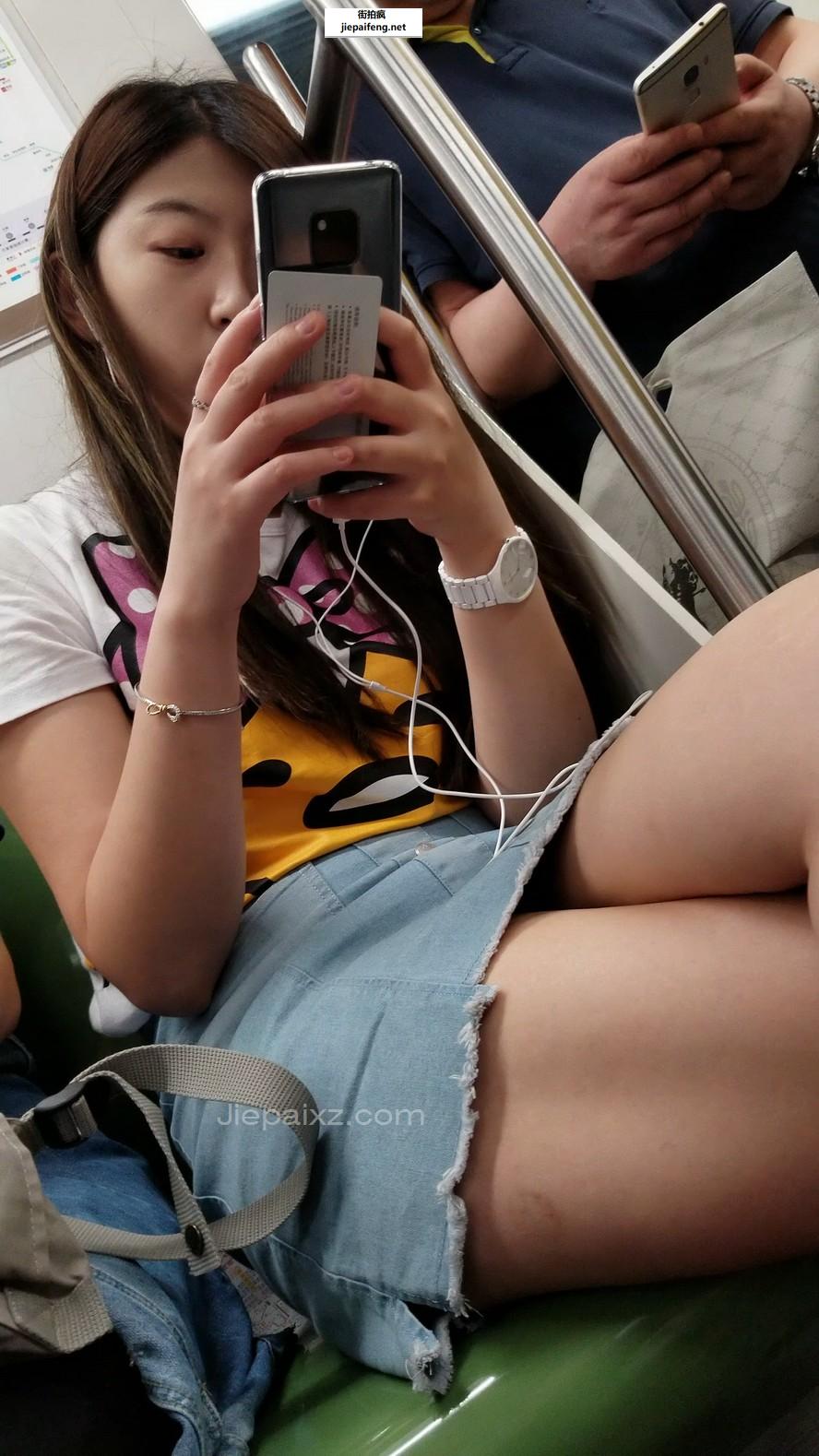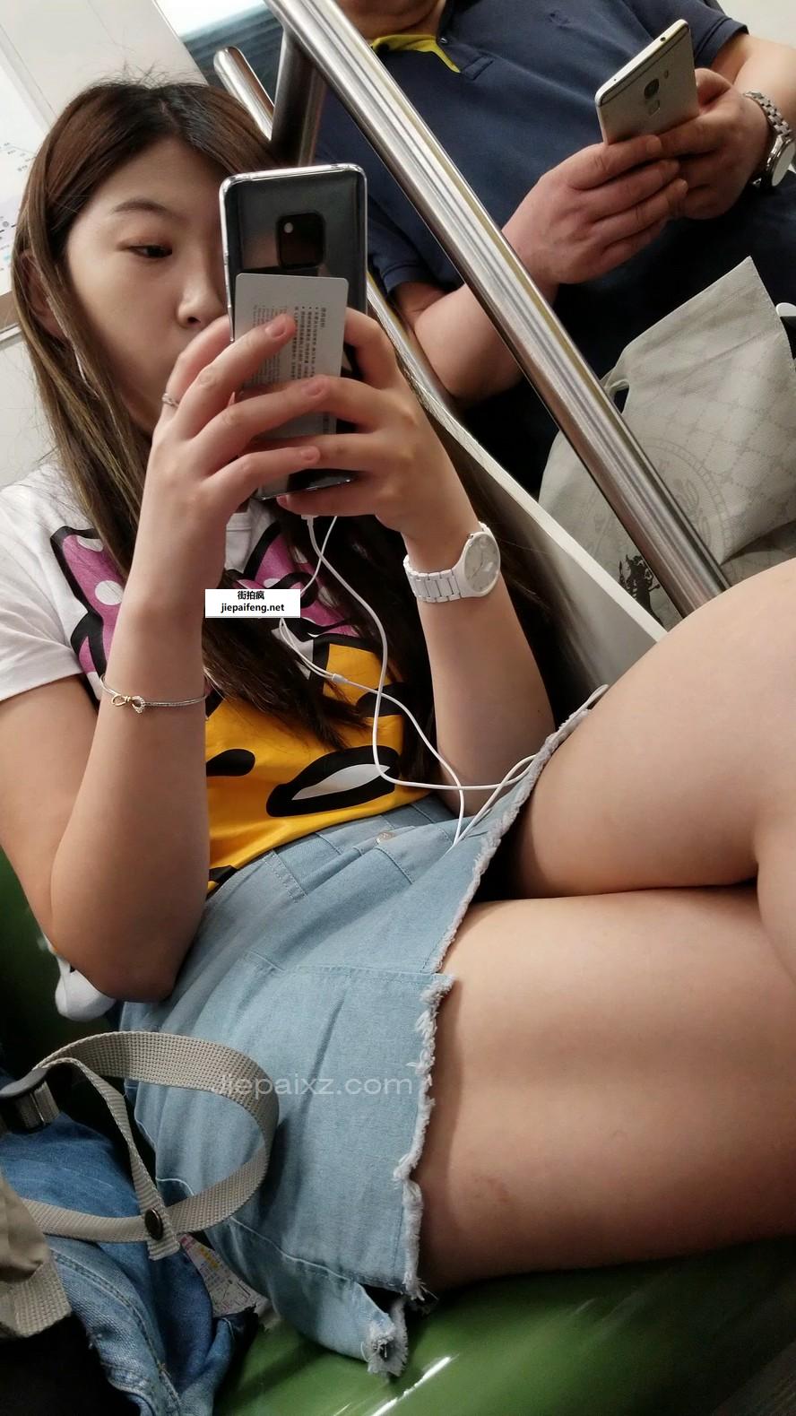 4K - 街拍依靠在地铁车厢里的牛仔裙姑娘 [1.26 GB/MP4]