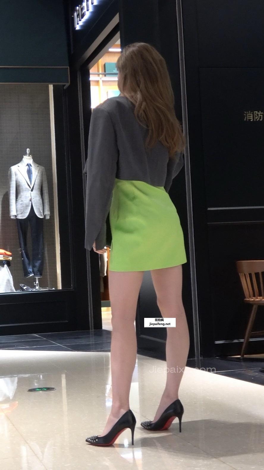 4K - 绿色短裙高跟美女很像一位明星 [2.56 GB/MP4]