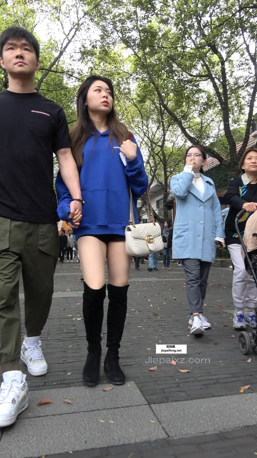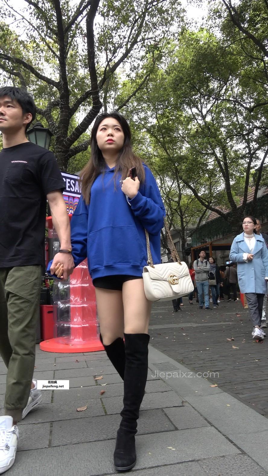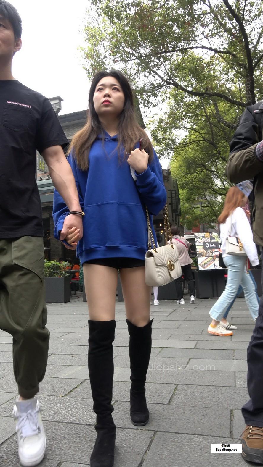 4K - 街拍蓝色卫衣、长靴美腿姑娘 [2.03 GB/MP4]