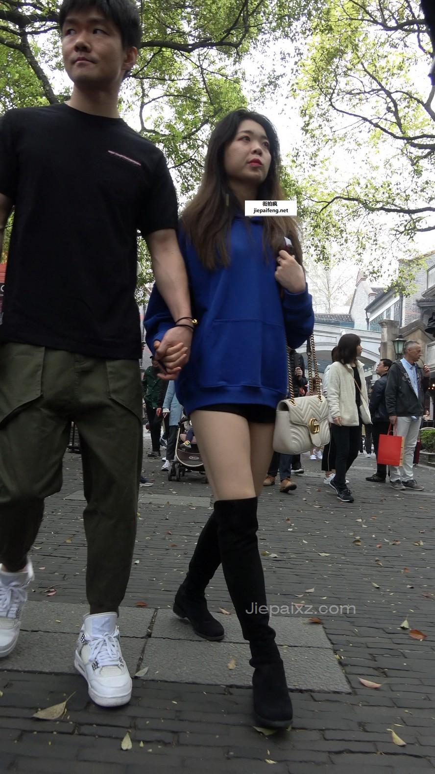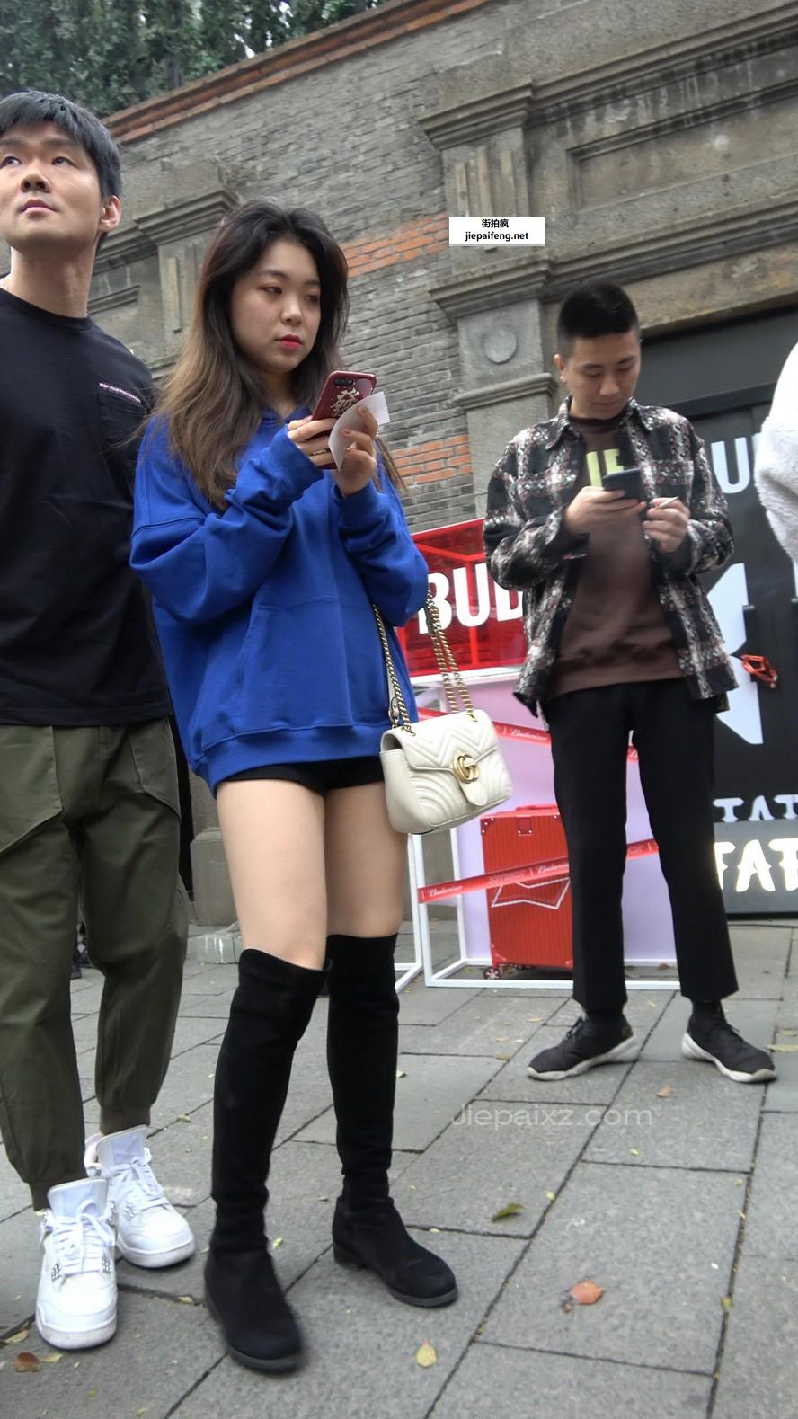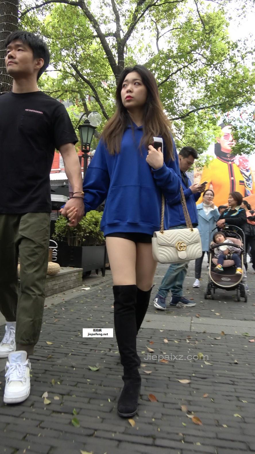 4K - 街拍蓝色卫衣、长靴美腿姑娘 [2.03 GB/MP4]