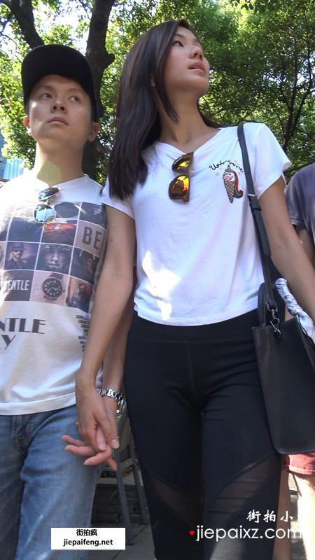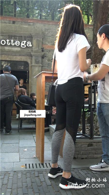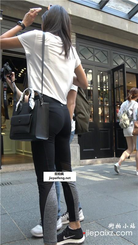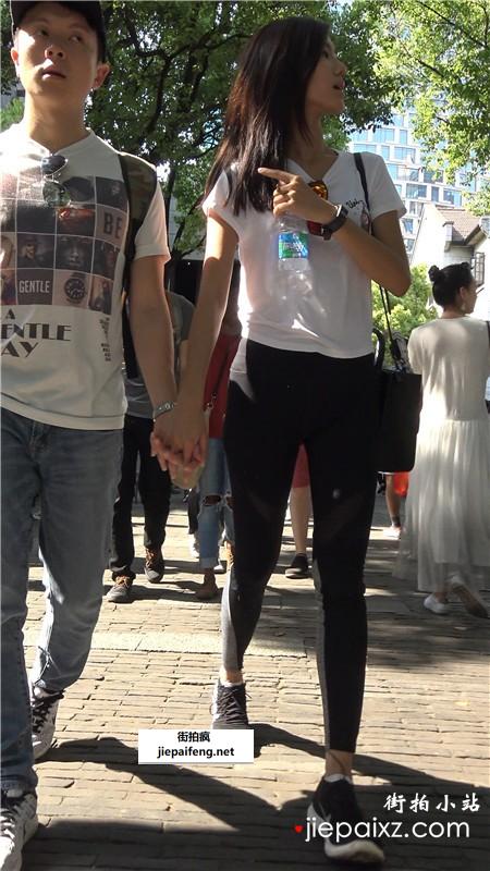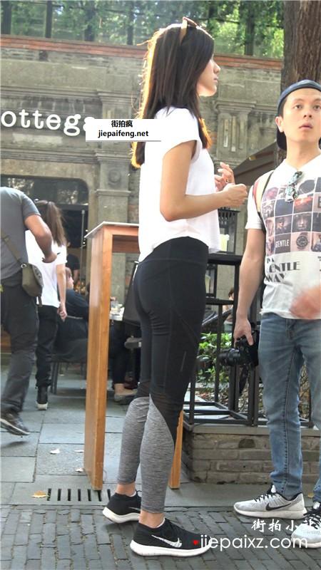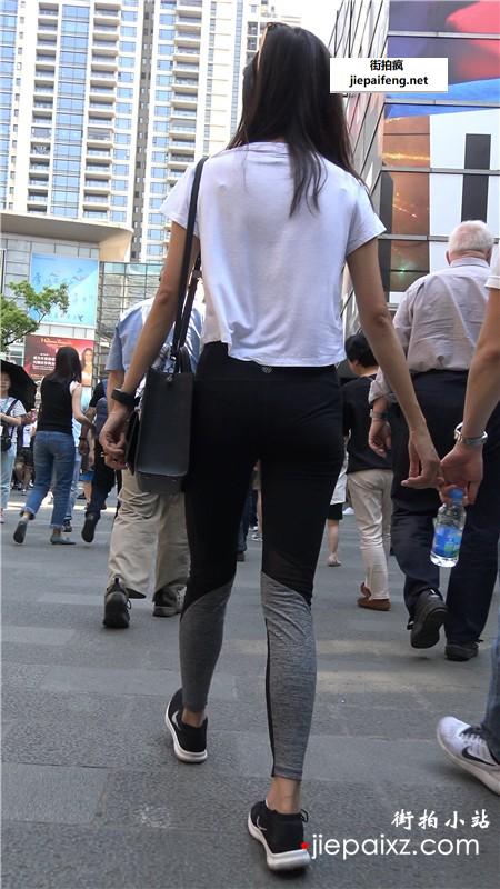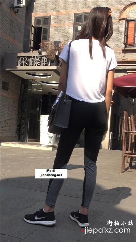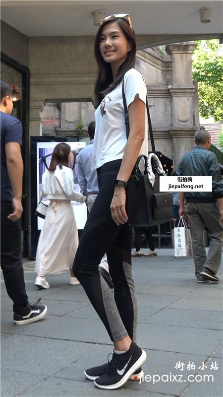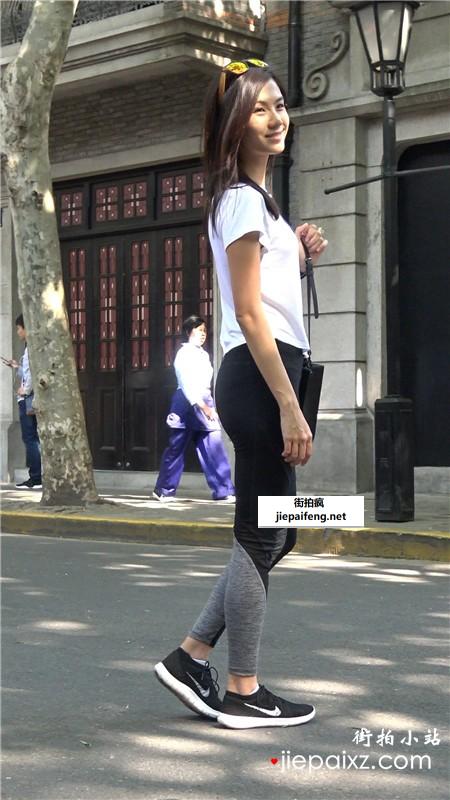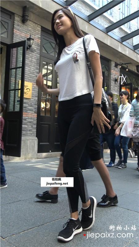 4k-黑色紧身弹力裤运动鞋白T恤街拍美女 [2.10 GB]