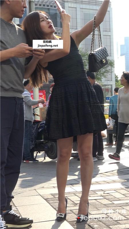 4k-黑色连衣裙高跟鞋街拍美女 [1.43 GB]