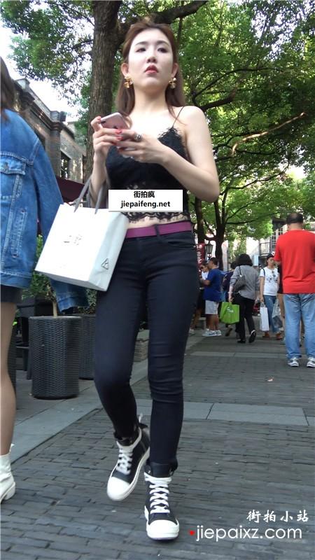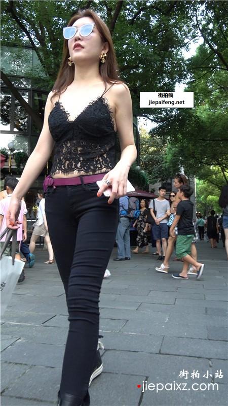 4k-蕾丝镂空吊带装紧身裤街拍美女 [1.32 GB]