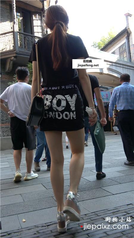 4k-天生丽质甜美黑色T恤短裙街拍美女 [1.10 GB]