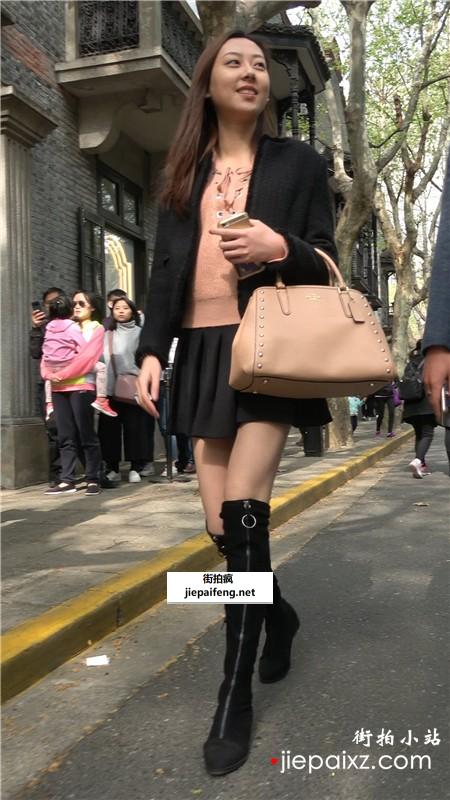 4k-黑色短裙长筒靴粉衣甜美街拍美女 [1.78 GB]