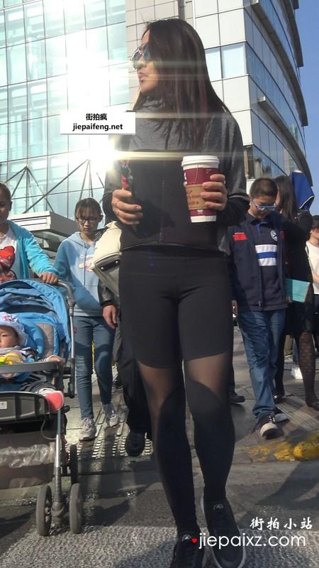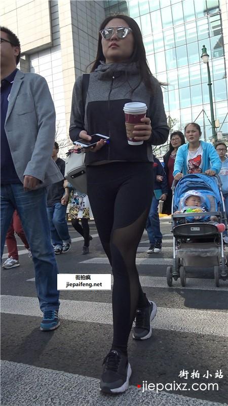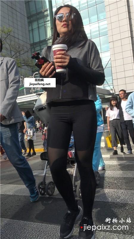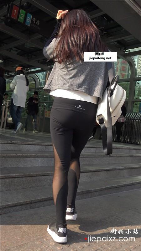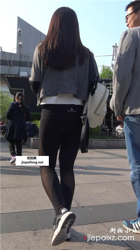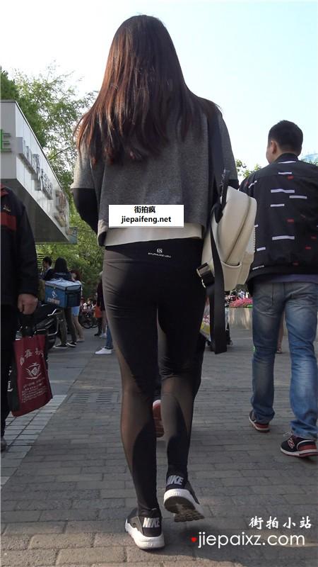 4k-黑色紧身弹力运动裤运动鞋丰臀街拍美女 [985 MB]