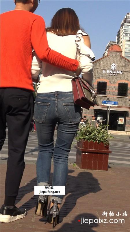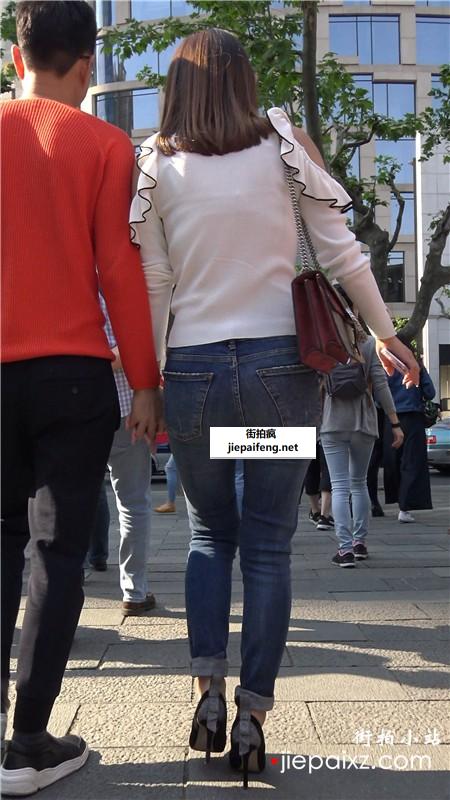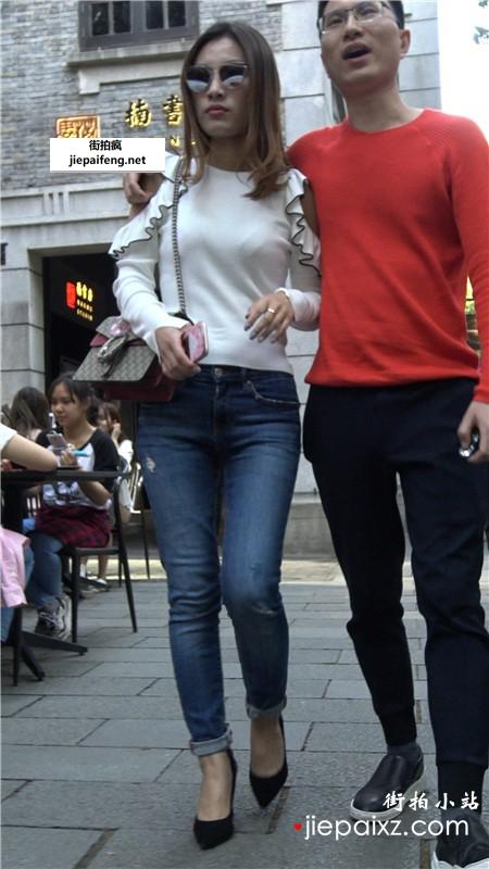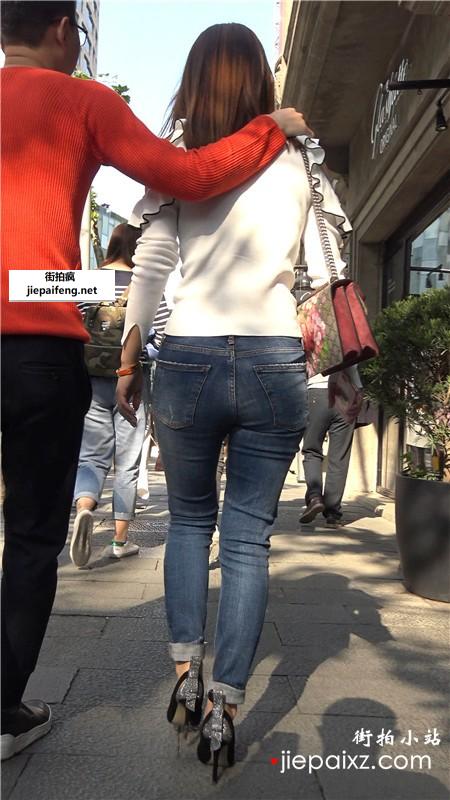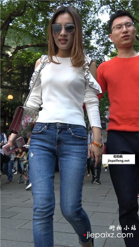 4k-紧身蓝色牛仔裤白衣服性感街拍美女 [1.54 GB]