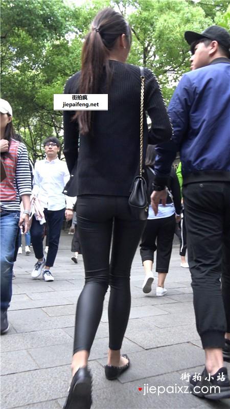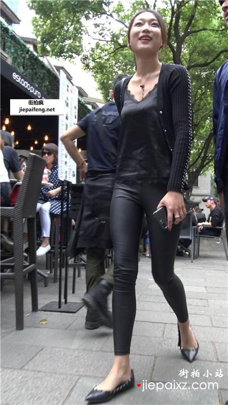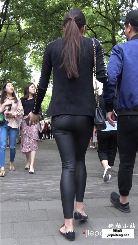 4k-黑色紧身皮裤气质马尾辫街拍美女 [1.12 GB]