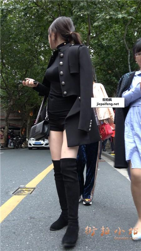 4k-黑色长靴热裤小西装街拍美腿美女 [1.02 GB]