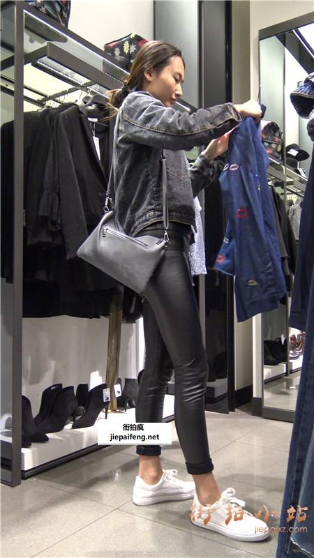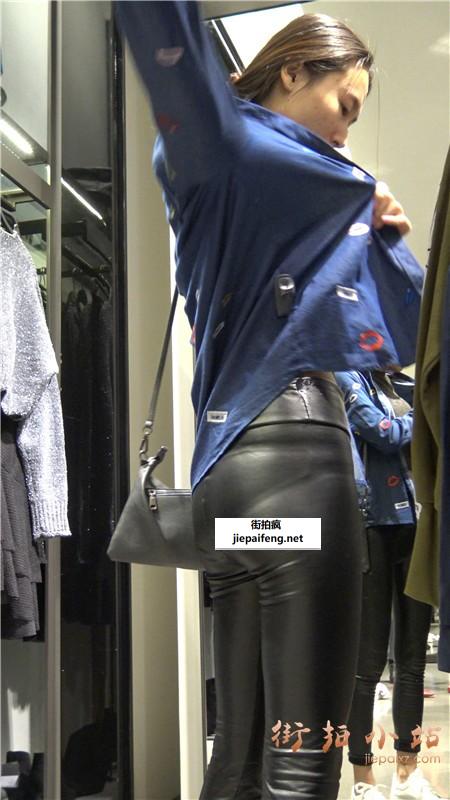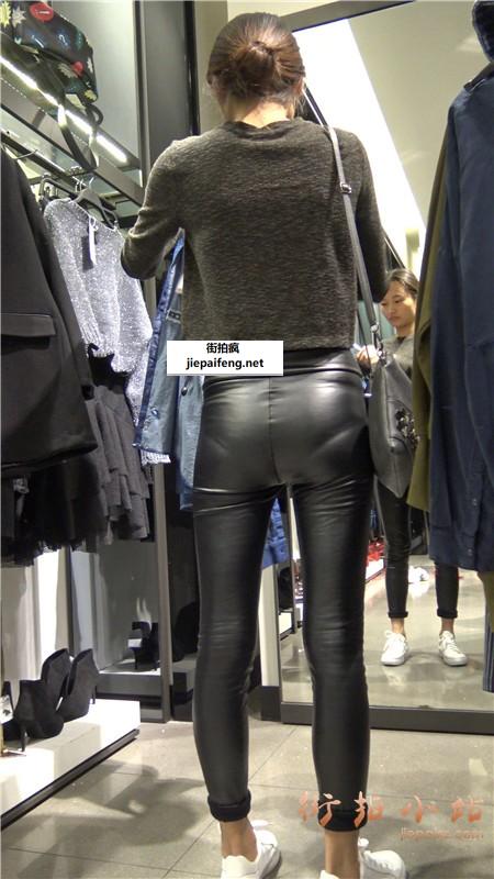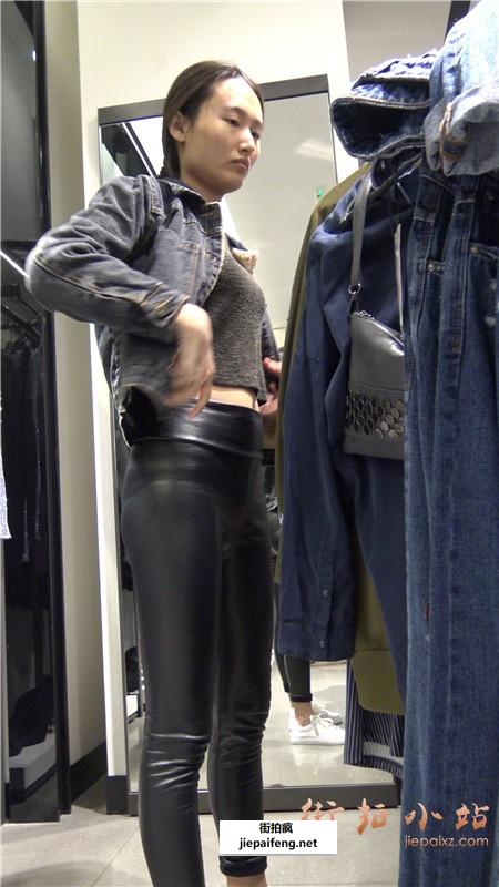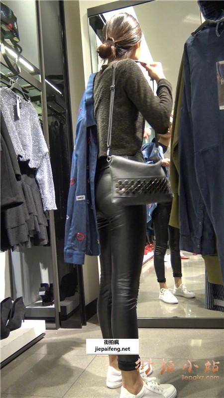 4k-黑色紧身皮裤秀丽美女姐姐服装店挑衣服 [576 MB]