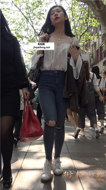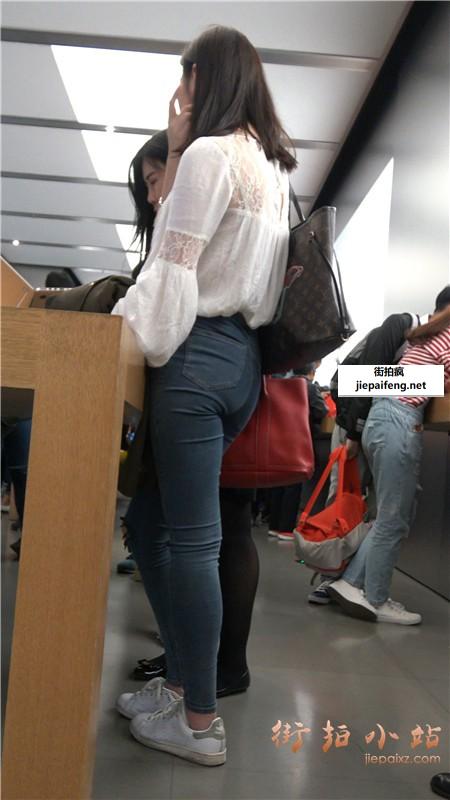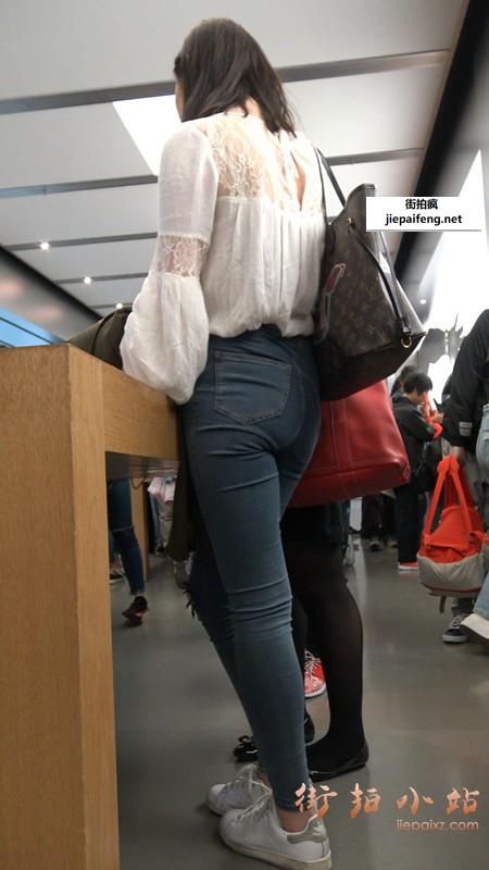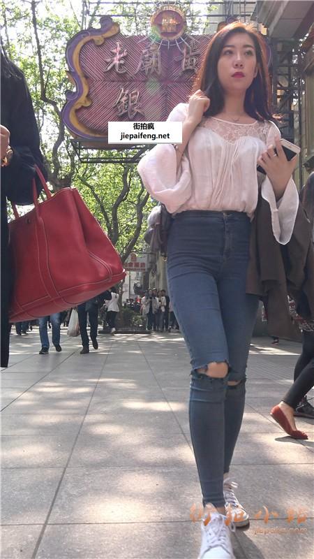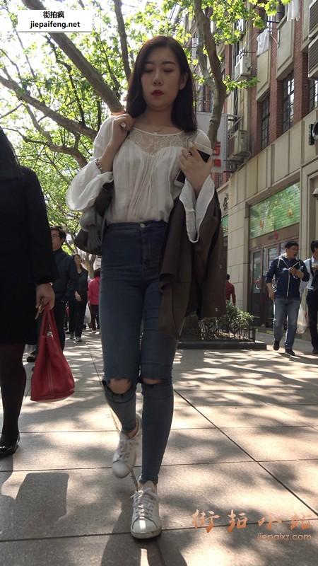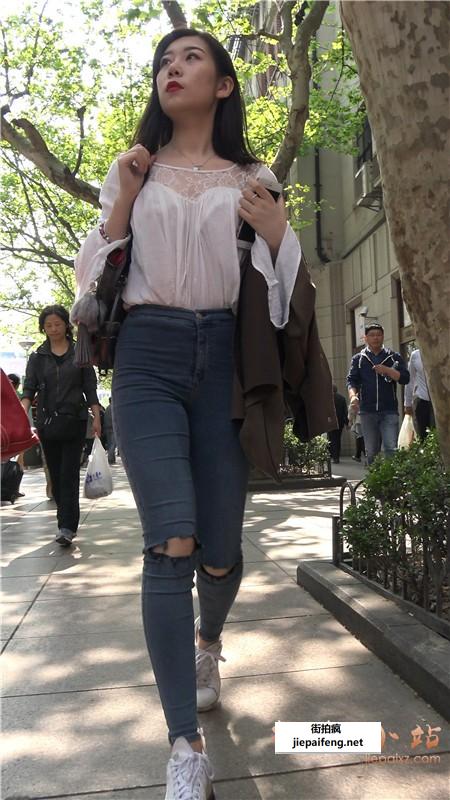 4k-破洞紧身蓝牛白衬衫街拍美臀姐姐 [1.04 GB]