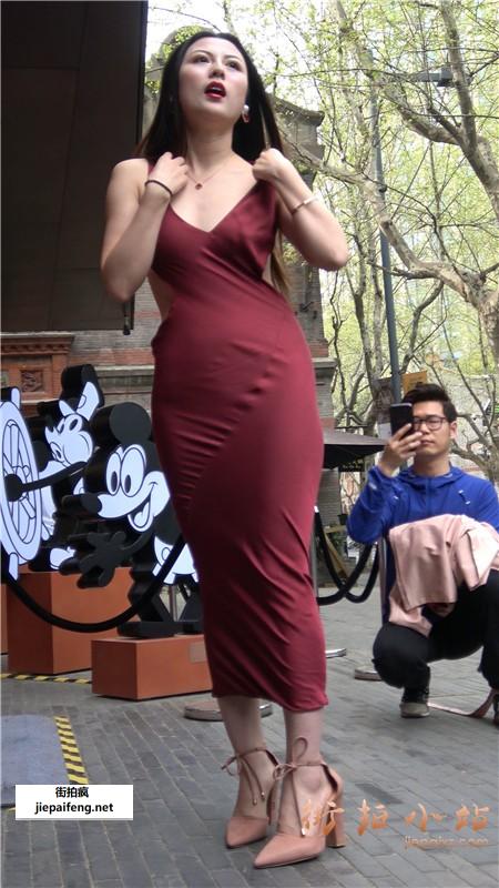 4k-超性感深红色露背裙街拍美女摆拍 [3.81 GB]