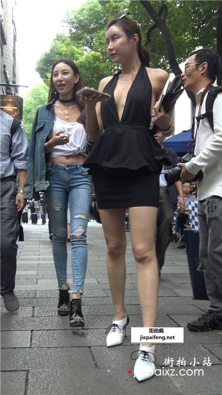 4k-超性感深V领包臀裙街拍美腿女神 [635 MB]