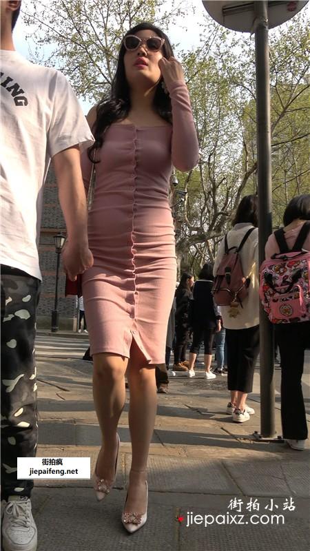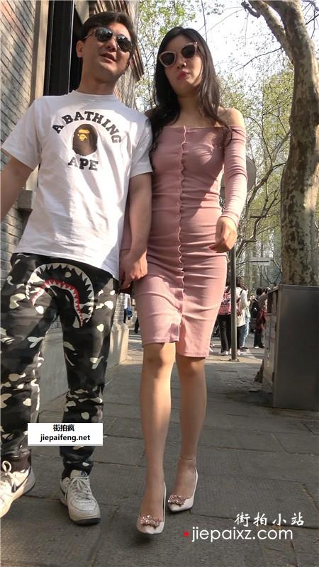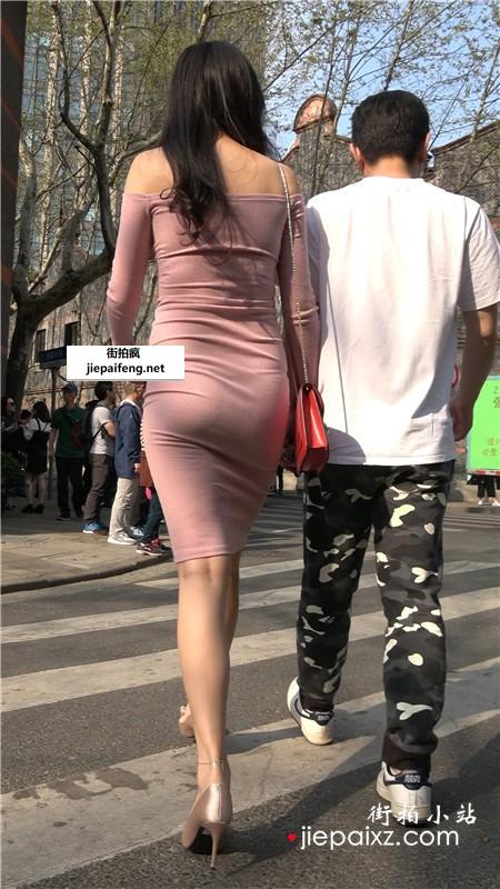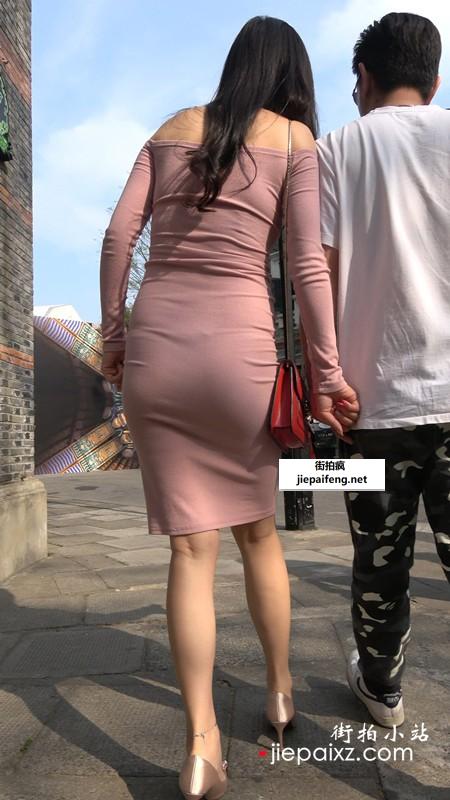 4K-超性感一字肩粉色包臀裙高跟鞋丁内街拍美女 [683 MB]