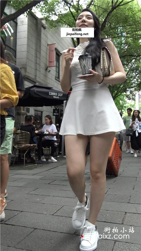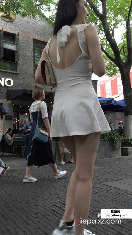 4K-性感好身材白色超短连衣裙街拍白富美美女 [621 MB]