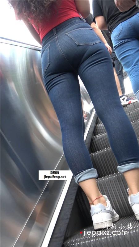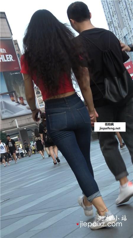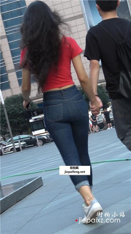 4K-红T恤曼妙小蛮腰街拍 丰臀紧身蓝牛美女 [922 MB]