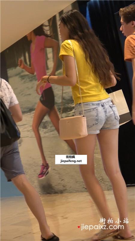4K-超短紧身热裤黄色T恤衫苗条好身材美女姐姐 [609 MB]