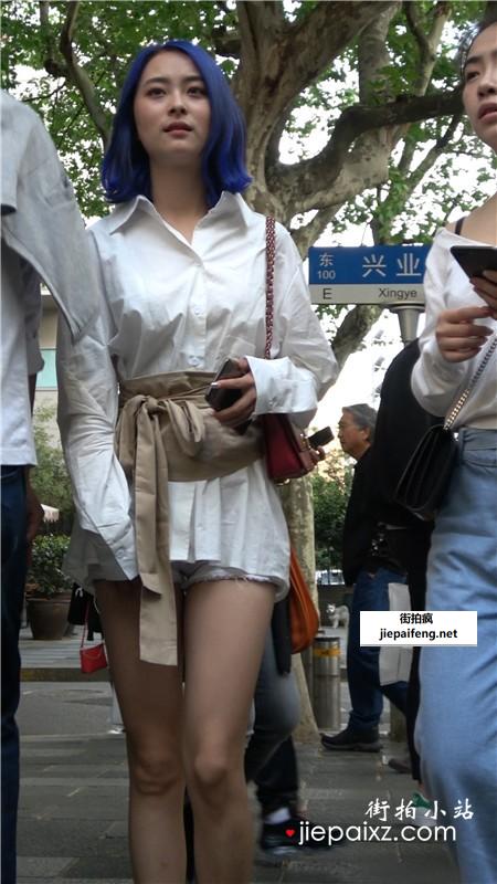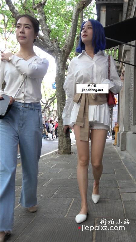 4K - 白色衬衫街拍美腿气质性感美女 [1.30 GB]