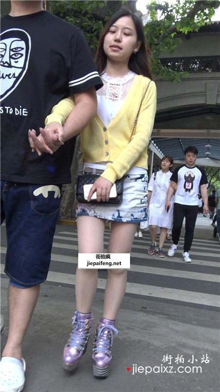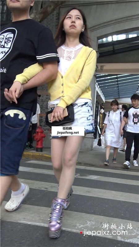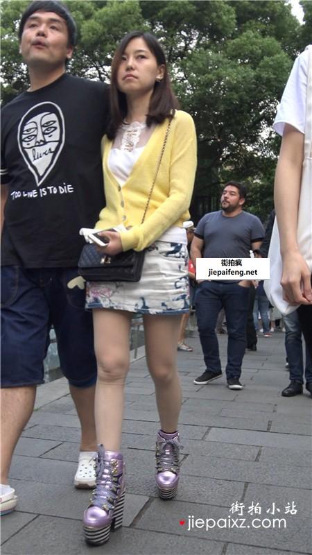 4K - 黄衣服花色包臀裙气质街拍高跟鞋美女 [1.04 GB]