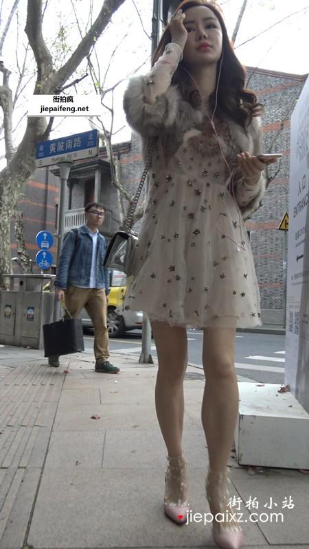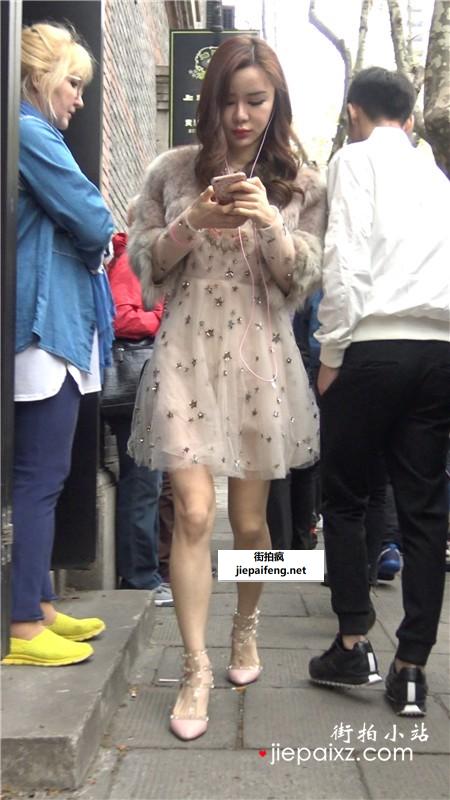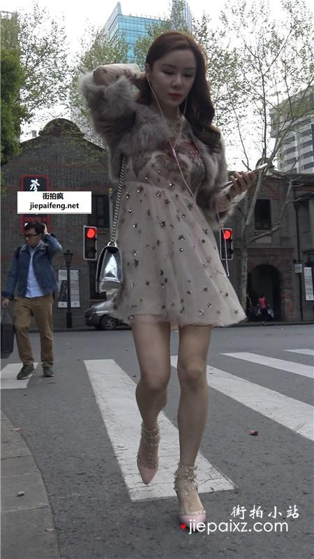 4K - 网红爆款高跟鞋连衣裙街拍美女 [466 MB]