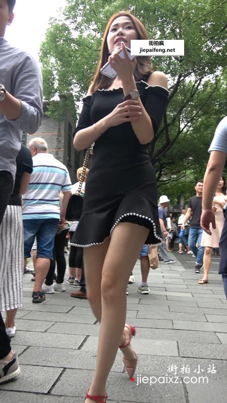 4K - 黑色连衣裙街拍甜美可人大美女 [914 MB]