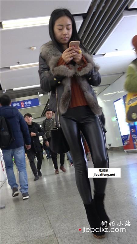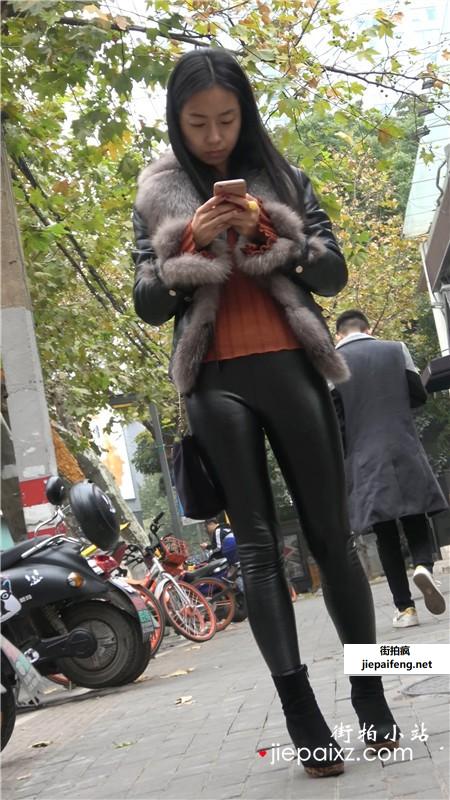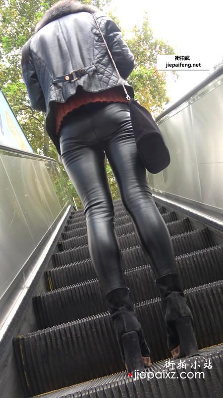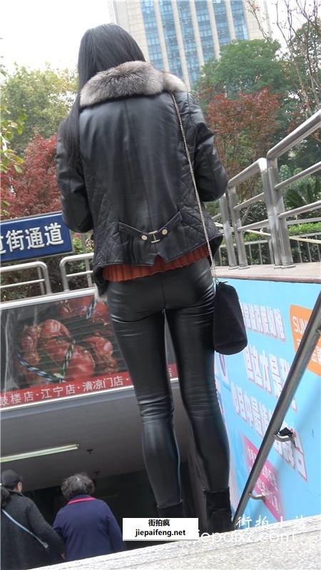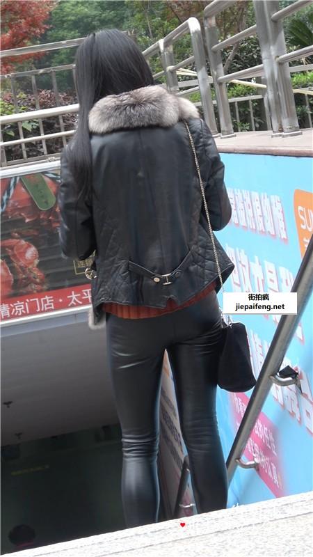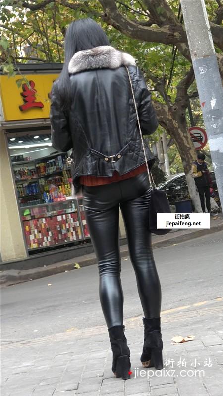 4K - 黑色紧身皮裤街拍苗条身材美臀美女 [1.32 GB]