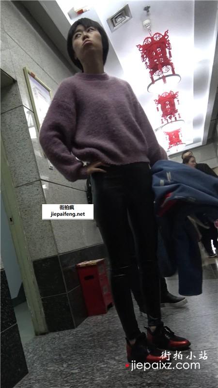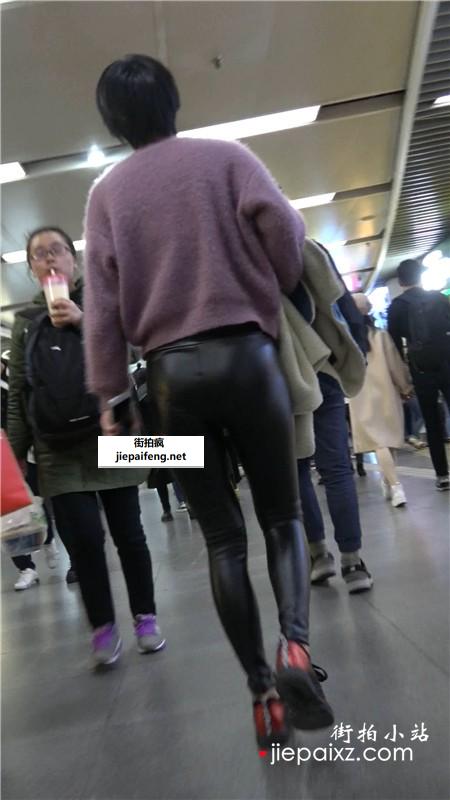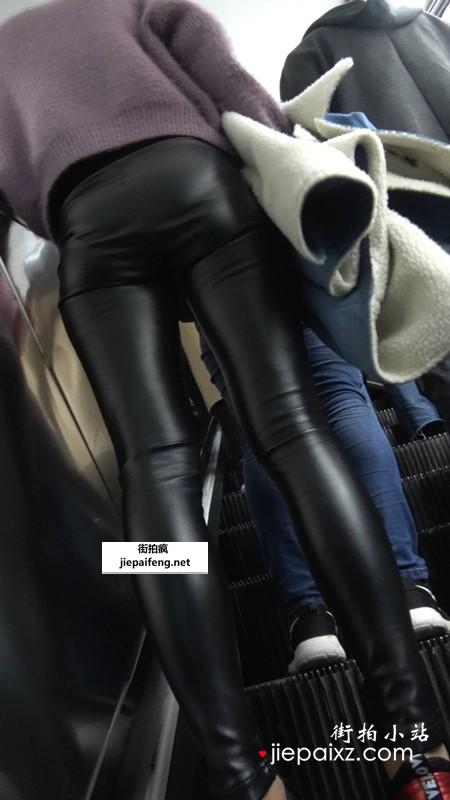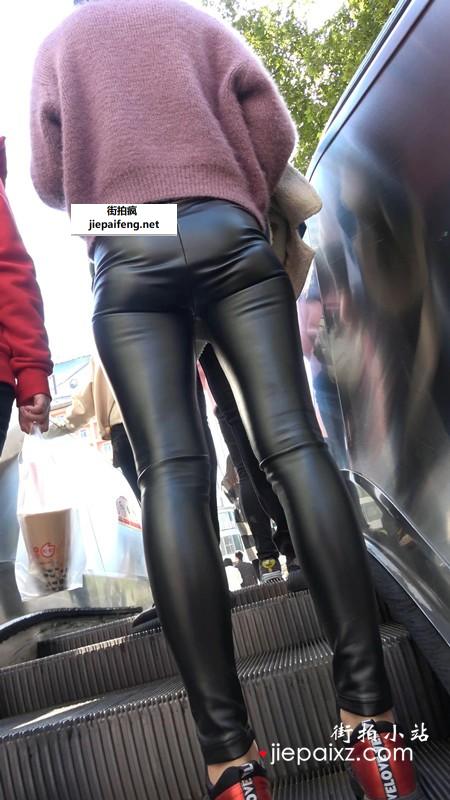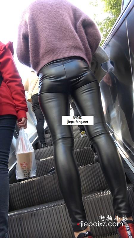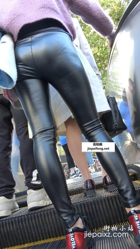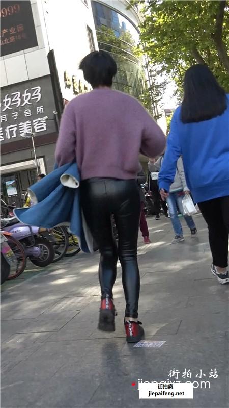 4K - 又一紧身黑色皮裤街拍丰臀短发美女 [937 MB]