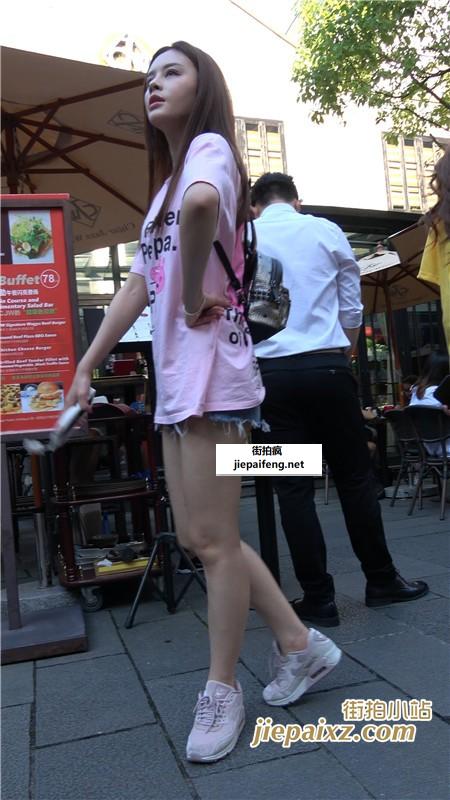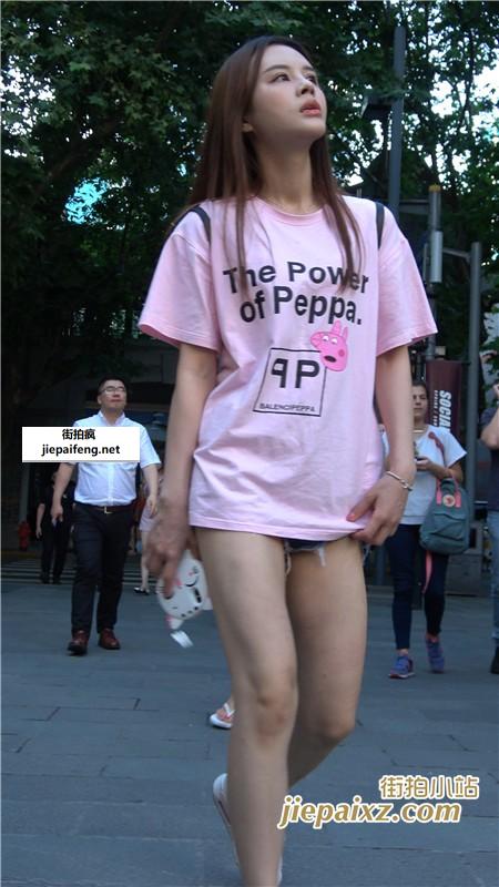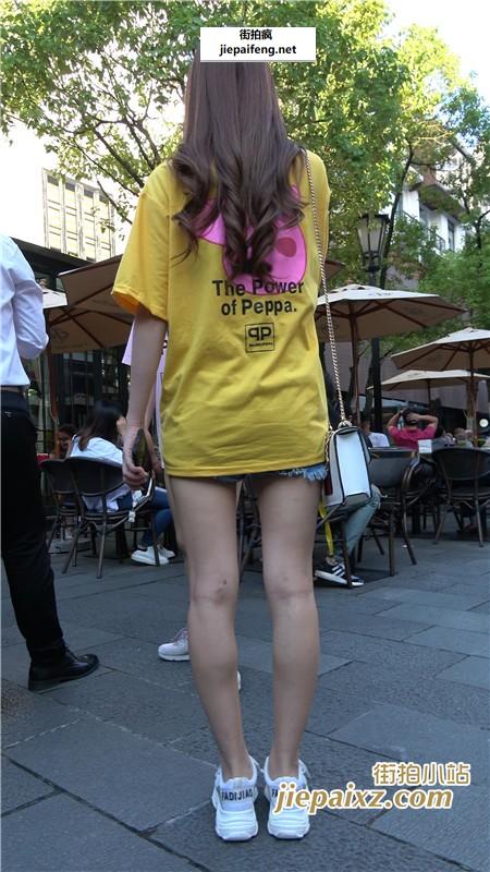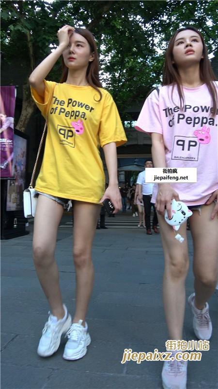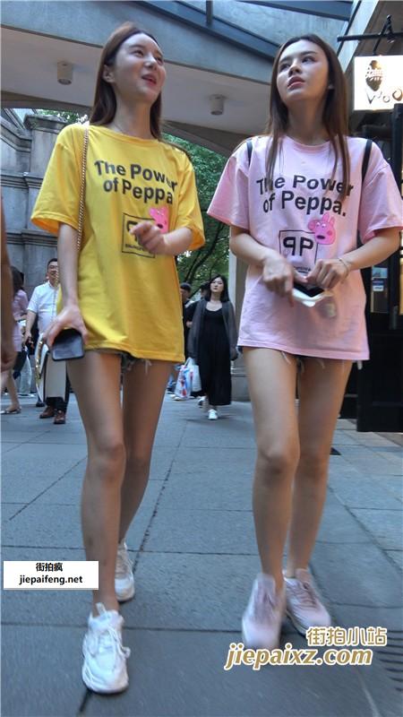 4K超短热裤长款T恤街拍美腿高颜值姐妹 [703 MB]