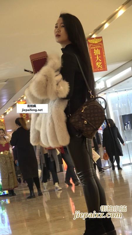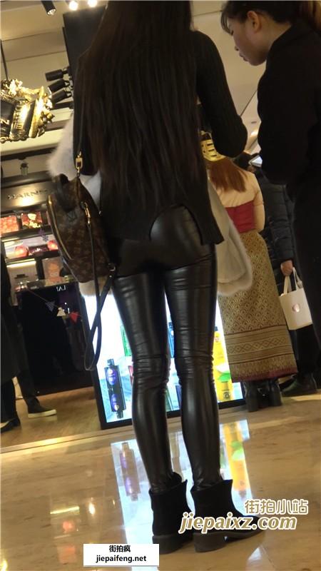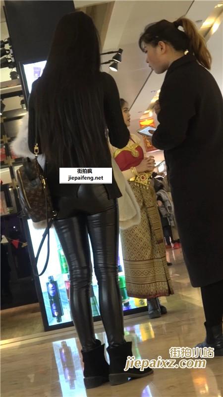 4K黑色毛衣紧身皮裤街拍美臀MM [719 MB]